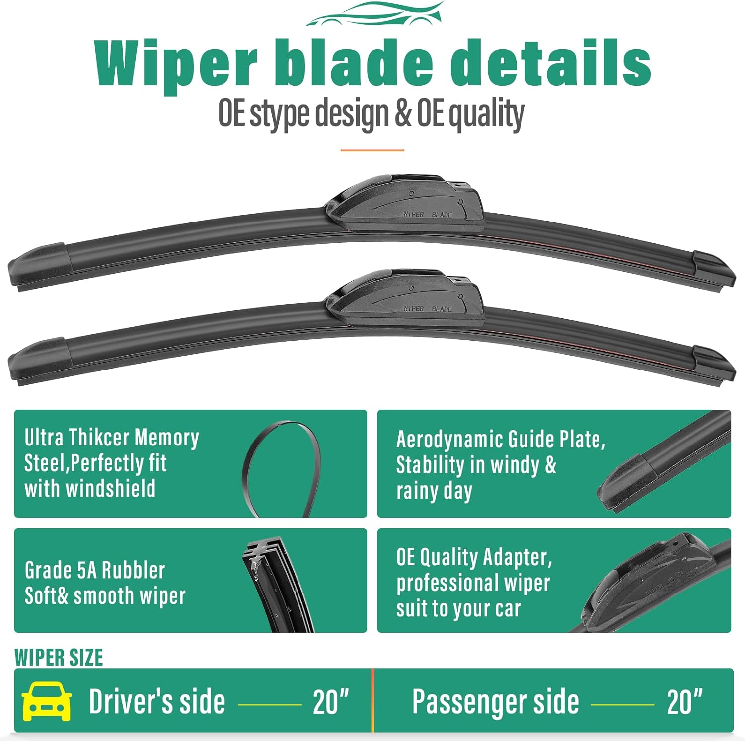 - [More Quiet wipers]: Precision engineering for optimal contact and even pressure distribution ,aerodynamic design reduces wind lift and noise.