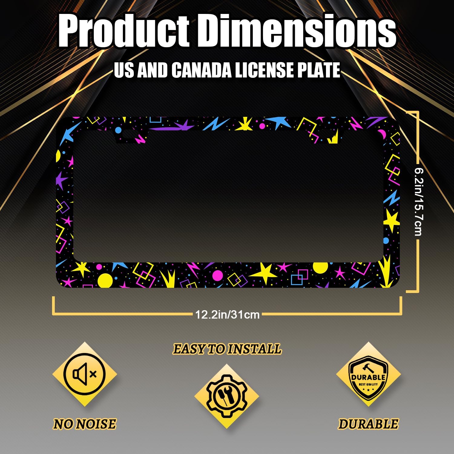 - The size of the license plate frame is: 12.3" x 6.3" , it fits all standard size US and Canada vehicle license plates.the stylish design frame fits ly on your car license plate.