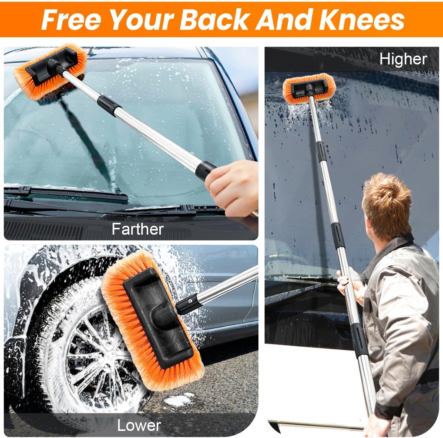 - 【Multi-functional Car Wash Snow Brush】In addition to car washing, the brush head can also help you remove snow or water from stubborn areas in winter. The snow broom's mane is thick and soft. You can quickly remove snow while protecting your car's paint.