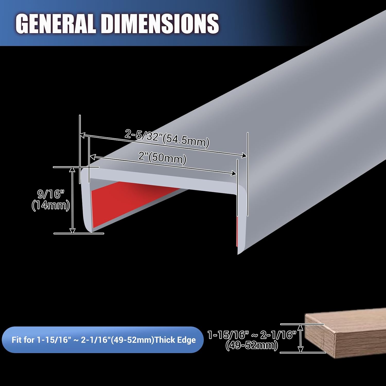Rubber Edge Trim, Flexible Self Adhesive U Shaped Peel and Stick Edge Banding, 2"(50mm) U Channel Edge Protector, Edge Guards for Woods, Furniture, 20Ft, Grey Color