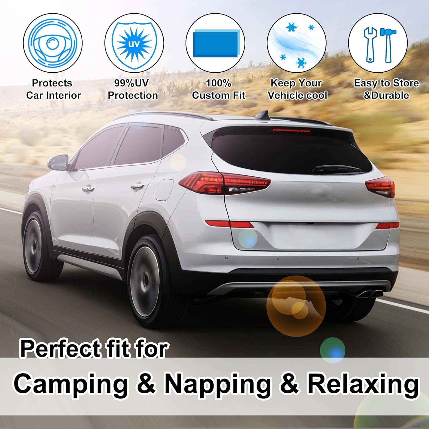 - Customized Design:The sun shade custom fit for Hyundai Tucson 2016-2021 (Not for 2022 Tucson).Our window shade is according to the car size design,perfectly fit your car and does not need to trim.windshield sun shade solve the problem of light leakage and incompatibility of the old umbrellas.The sunshade designed for Hyundai Tucson(Not for 2022 Tucson).