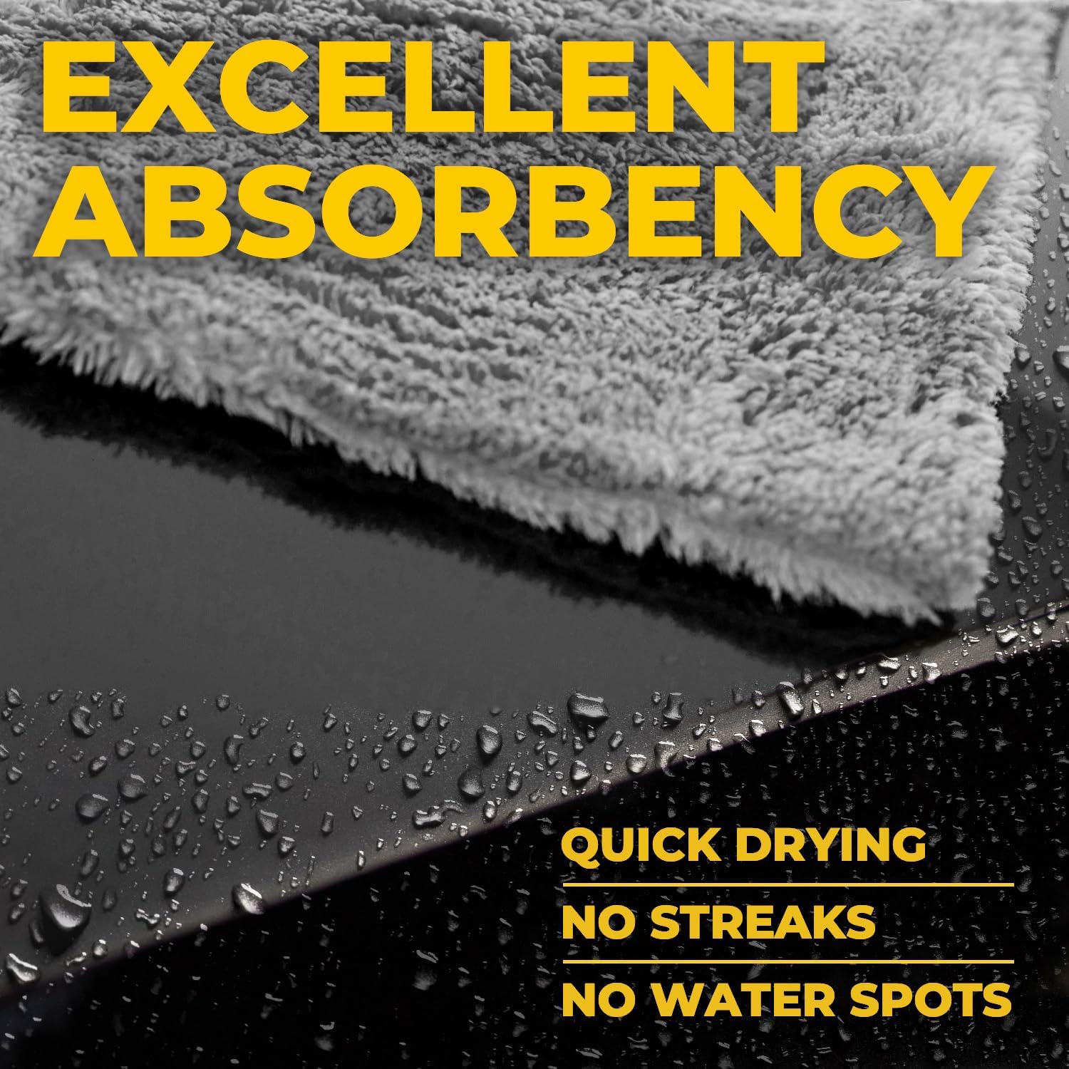 - EXCELLENT ABSORBANCY – Our premium thick microfiber cleaning cloth easily absorbs and holds water without leaving streaks or spots. These exceptionally soft microfiber cleaning cloths for cars soak up liquids and perfectly shine your sweet ride.