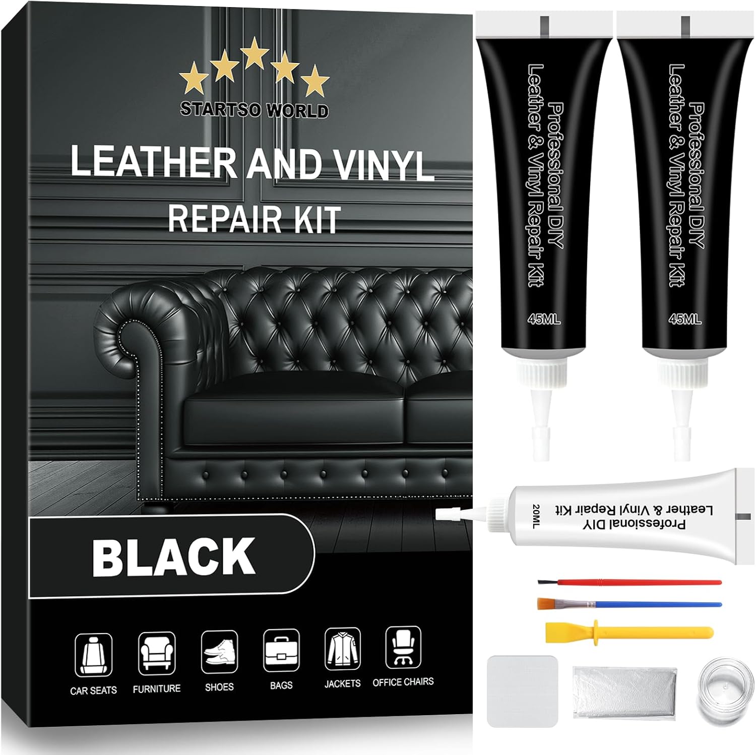 - Professional-Grade Repair: Restore your leather couches, chairs, and car interiors to their former glory! STARTSO WORLD professional-grade leather repair kit eliminates scratches, tears, fading, cuts, holes, cracks, stains, and even pet damage with ease. Suitable for leatherette, faux, synthetic, bicast, PU, and premium upholstery, it ensures a flawless finish that rivals professional results.