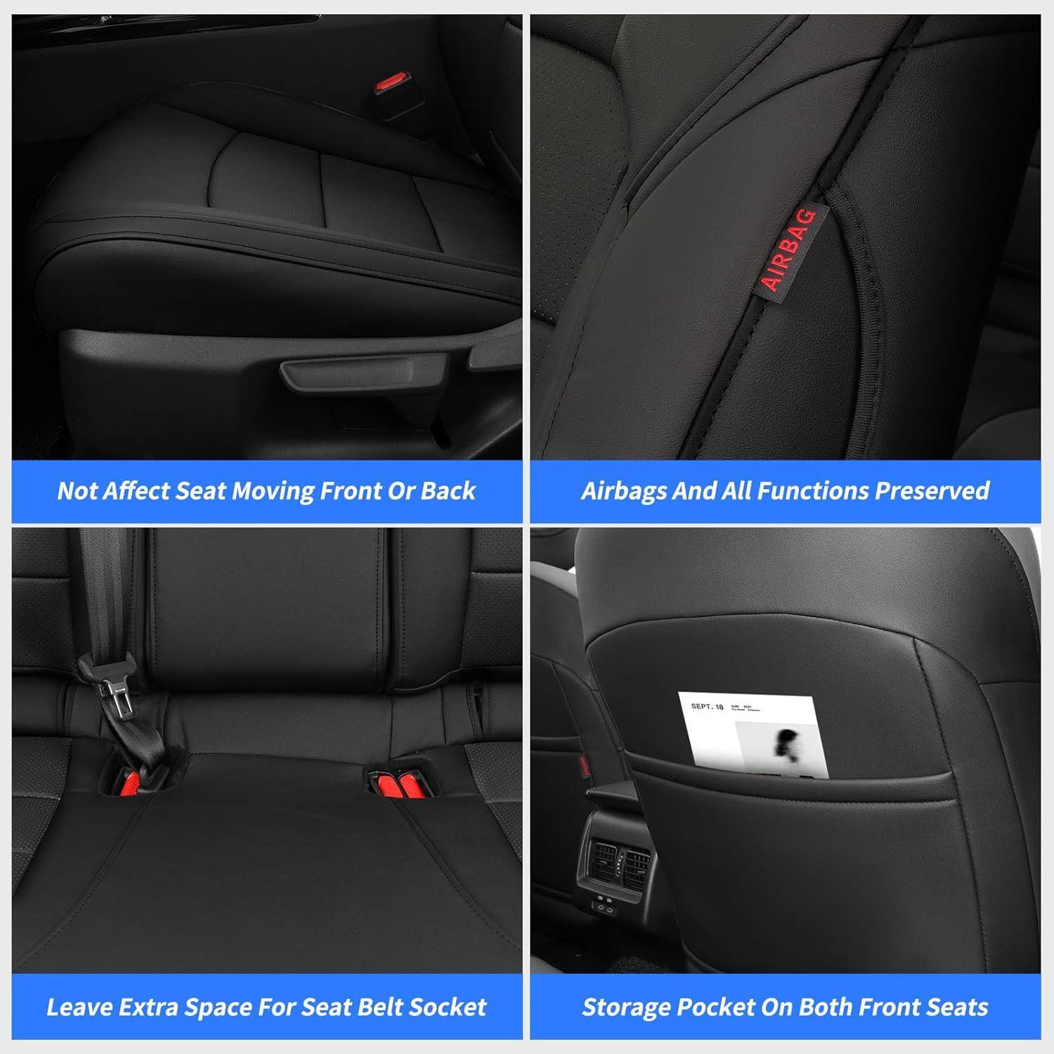 - Safety Airbag and Child Safety Seat Compatible: We understand that safety is paramount.That's why our seat covers are fully compatible with your camry's safety airbags, ensuring that you and your passengers are protected at all times.Designed with families in mind,our seat covers are compatible with child safety seats,ensuring that you can prioritize your child's safety without compromising on style or comfort.