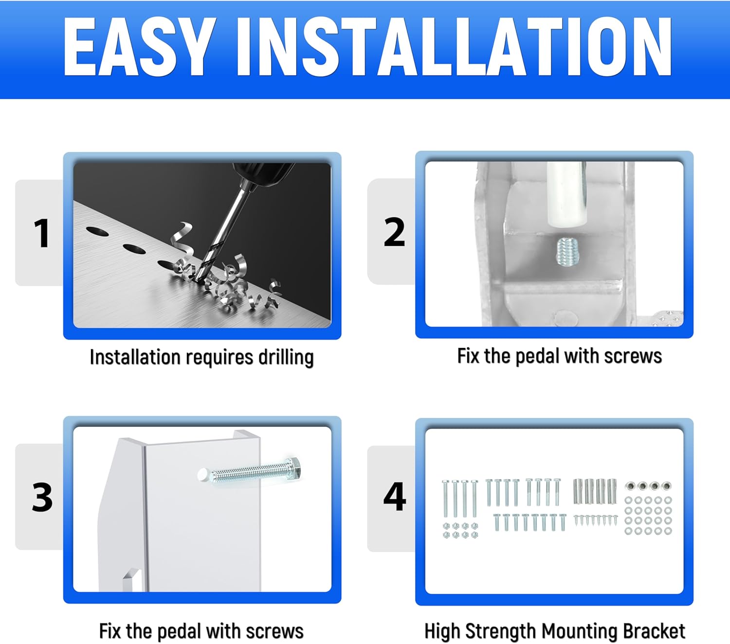 - Easy Installation: 2 Pcs X Side Steps (Silvery) . The package contains the necessary installation accessories as well as instructions. Takes the design of simple screw mounting. Please note that drilling is required before installation.
