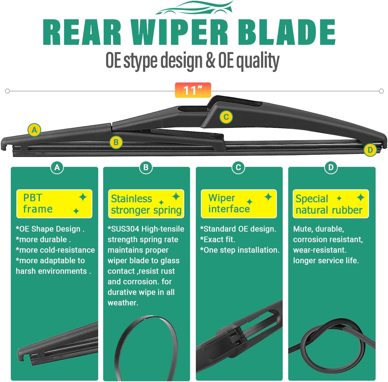 - [More Quiet wipers]: Precision engineering for optimal contact and even pressure distribution ,aerodynamic design reduces wind lift and noise.