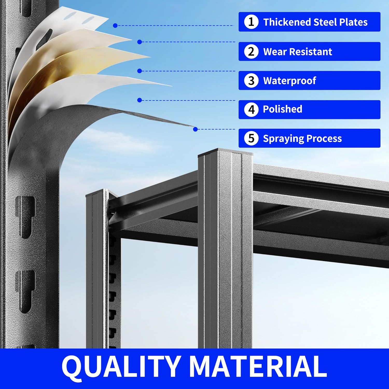 - Quick and Easy Installation of Garage Shelves:The garage shelving columns are connected using a unique connector that eliminates the need for nuts and bolts. We have prepared installation instructions and videos and come with a pair of gloves and a small hammer to make the installation of your metal shelving easier!