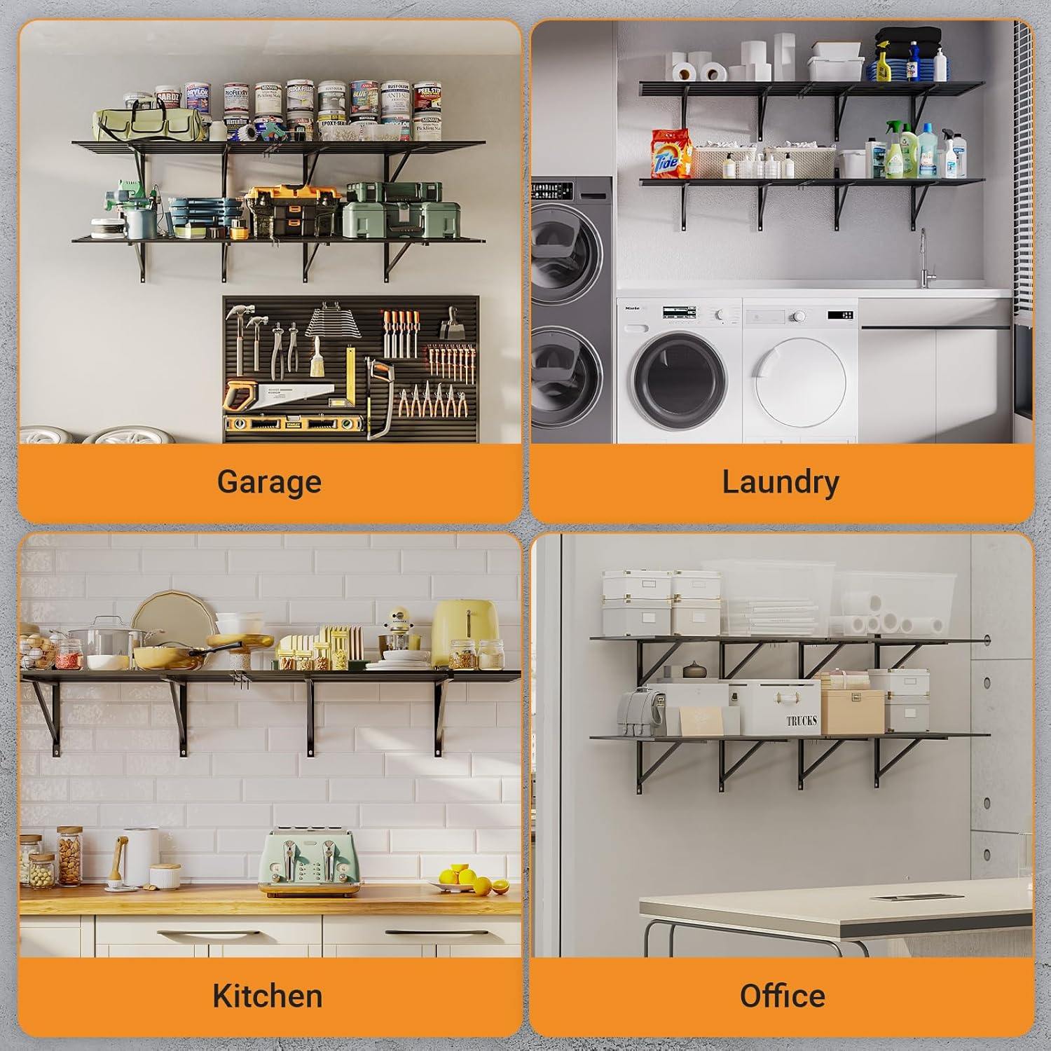 - HEAVY GAUGE STEEL CONSTRUCTION: Crafted from heavy gauge steel, our garage storage shelving boasts an impressive weight capacity of up to 1600 lbs, which also has been passed the test of double load-bearing capacity 3200lbs, ensuring reliable support for your heavy items.