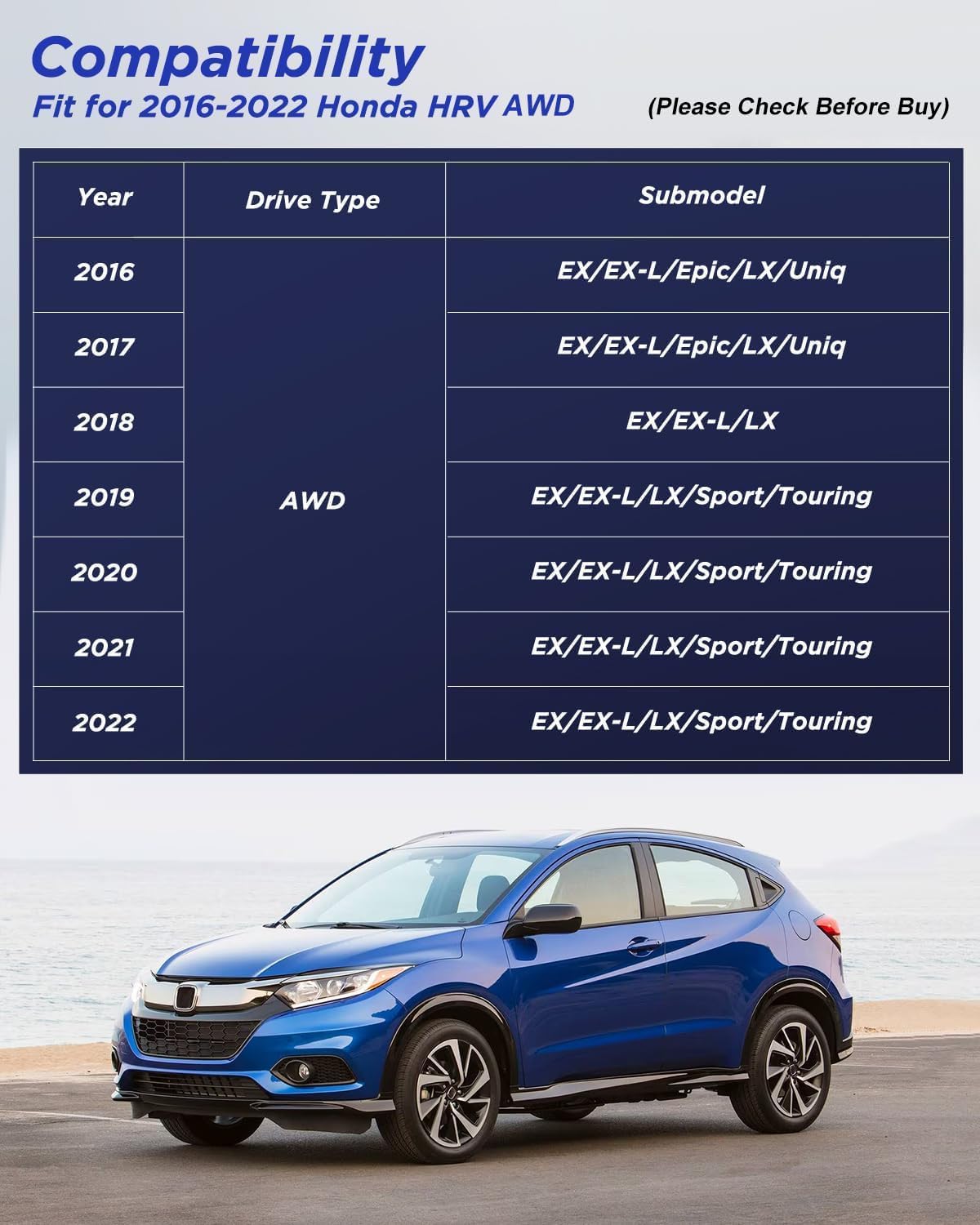 - Material Rubber, Thermoplastic Elastomer (TPE) : Vehicle Service Type for Honda HRV AWD 2016-2022