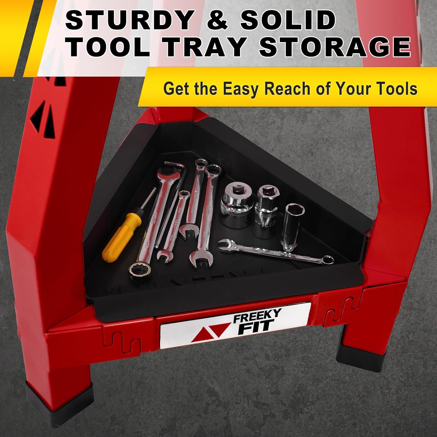 - 【Tool Tray Storage】The garage stool with steel tube and strong metal structure provides space for resting your feet. The design of this shop chair includes a triangular tool tray located under the seat. Make it convenient to store and access necessary tools and parts at anytime