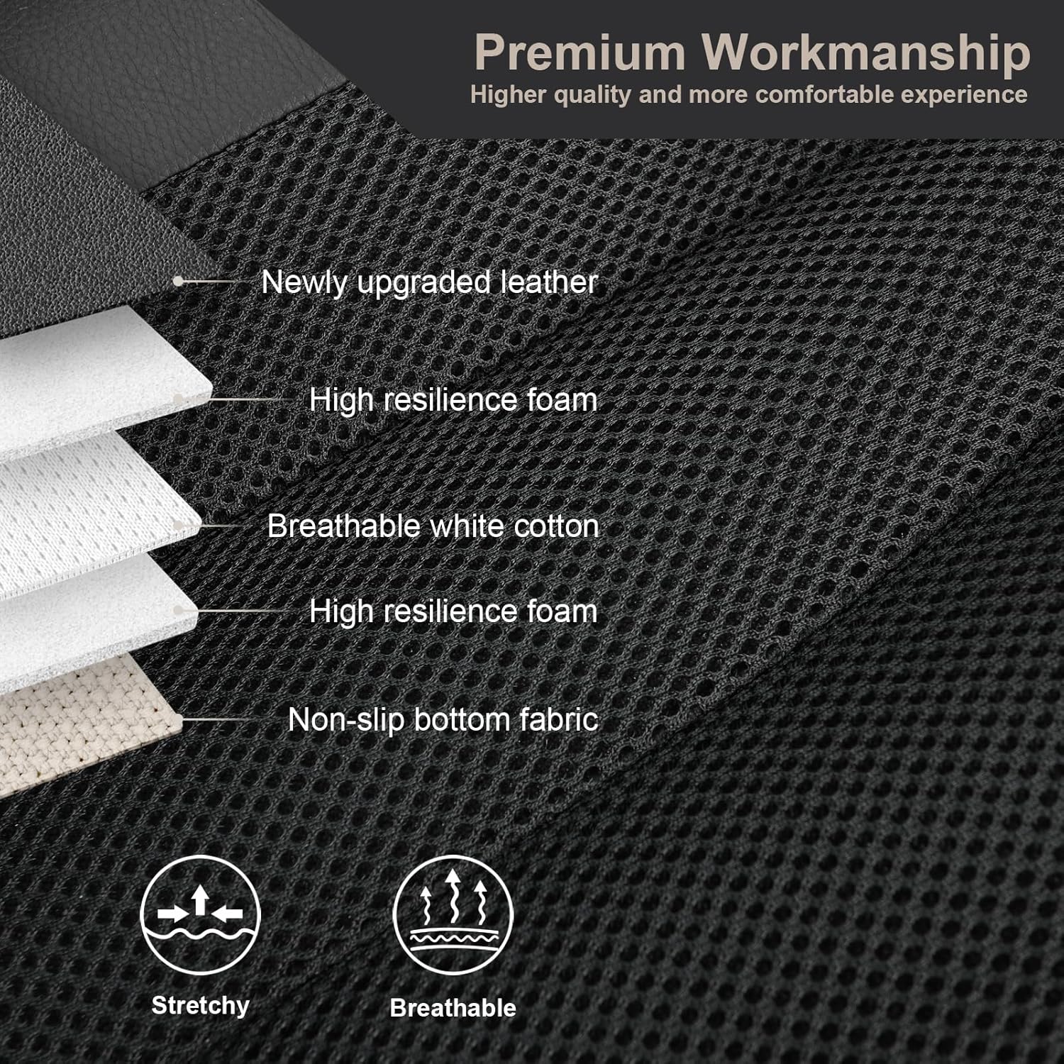 - 【Materials】 Our car seat covers combine premium faux leather with breathable mesh fabric. The faux leather provides a luxurious look and durability, while the honeycomb mesh design on the backrest and seat ensures excellent breathability and cooling, keeping you comfortable during long drives and in hot weather