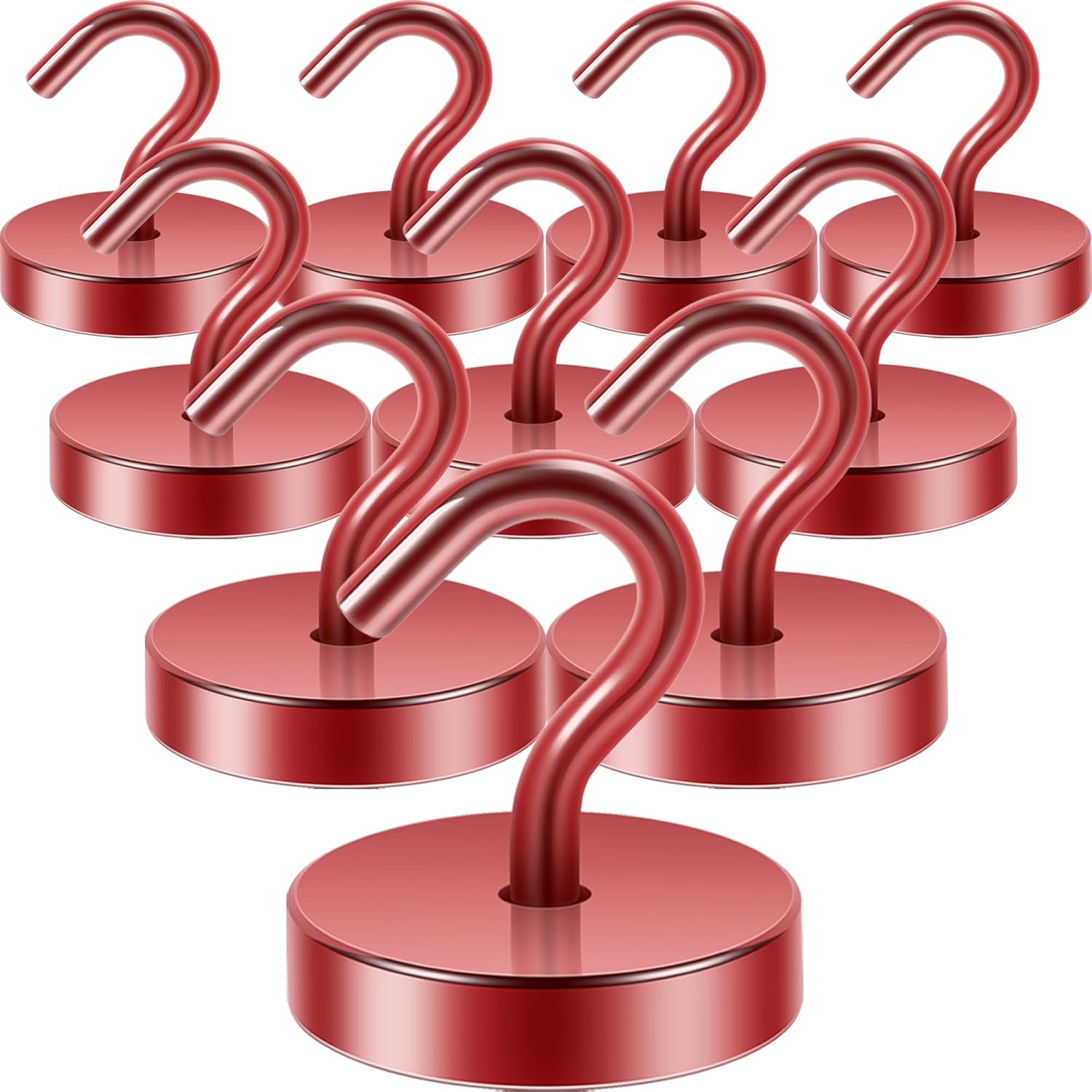 Neosmuk Magnetic Hooks, Cruise Ship Essentials, 120lb+ Heavy Duty Magnetic Hooks for Cruise Cabins, Refrigerator, Grill, Hanging, and Travel | Extra Strong Must-Haves Magnet Hook,Red, Pack of 10