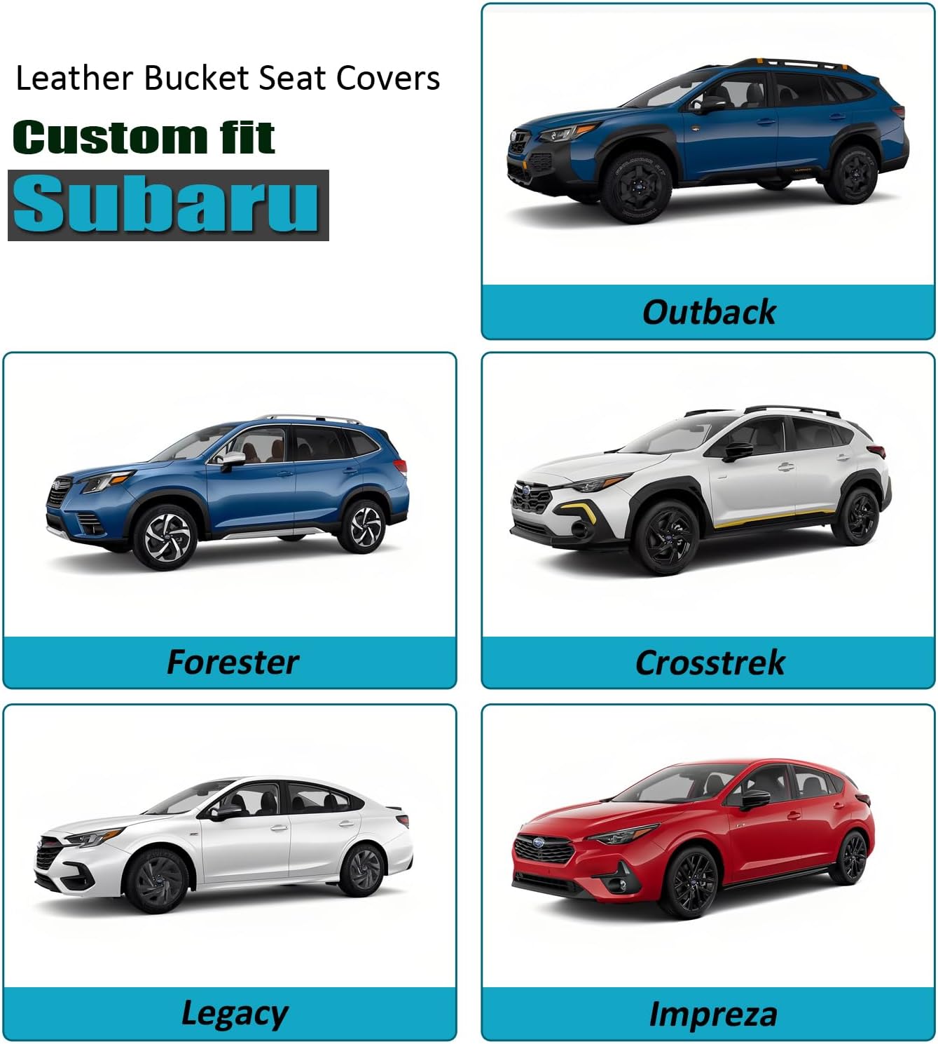 - Front car seat covers fit Subaru Outback Forester Crosstrek Legacy Impreza.