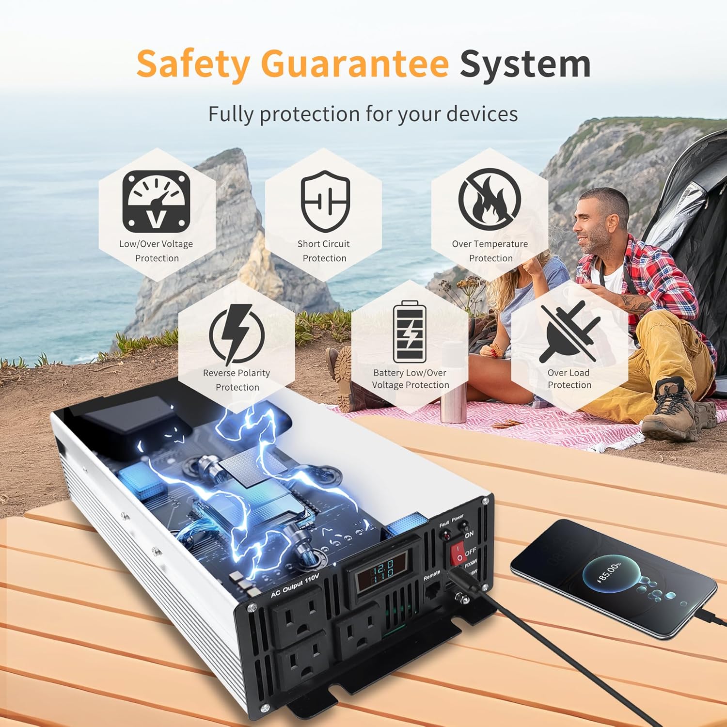 - 【Safety Protection System】The pure sine wave inverter was designed with an isolated input/output stable design that offers undervoltage protection, and short circuit protection to ensure safety. We are committed to providing excellent customer service
