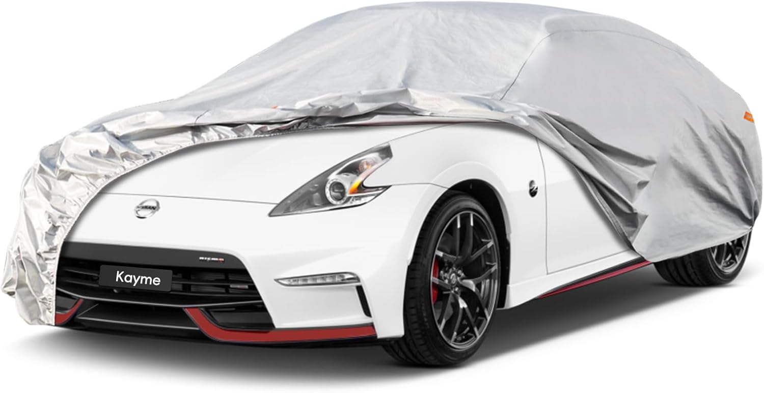 Kayme 6 Layers Car Cover Custom Fit for Nissan 350Z/370Z(2009-2025) Waterproof All Weather for Automobiles, Outdoor Full Cover Rain Sun UV Protection.Silver
