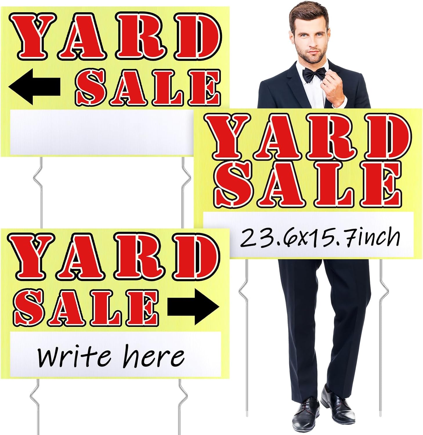 - Comprehensive Yard Sale Kit: With our package that includes three high visibility yard sale signs coupled with stakes, you can easily host large scale yard sales or advertise in multiple locations. Ensure your sale catches attention with our striking signs.