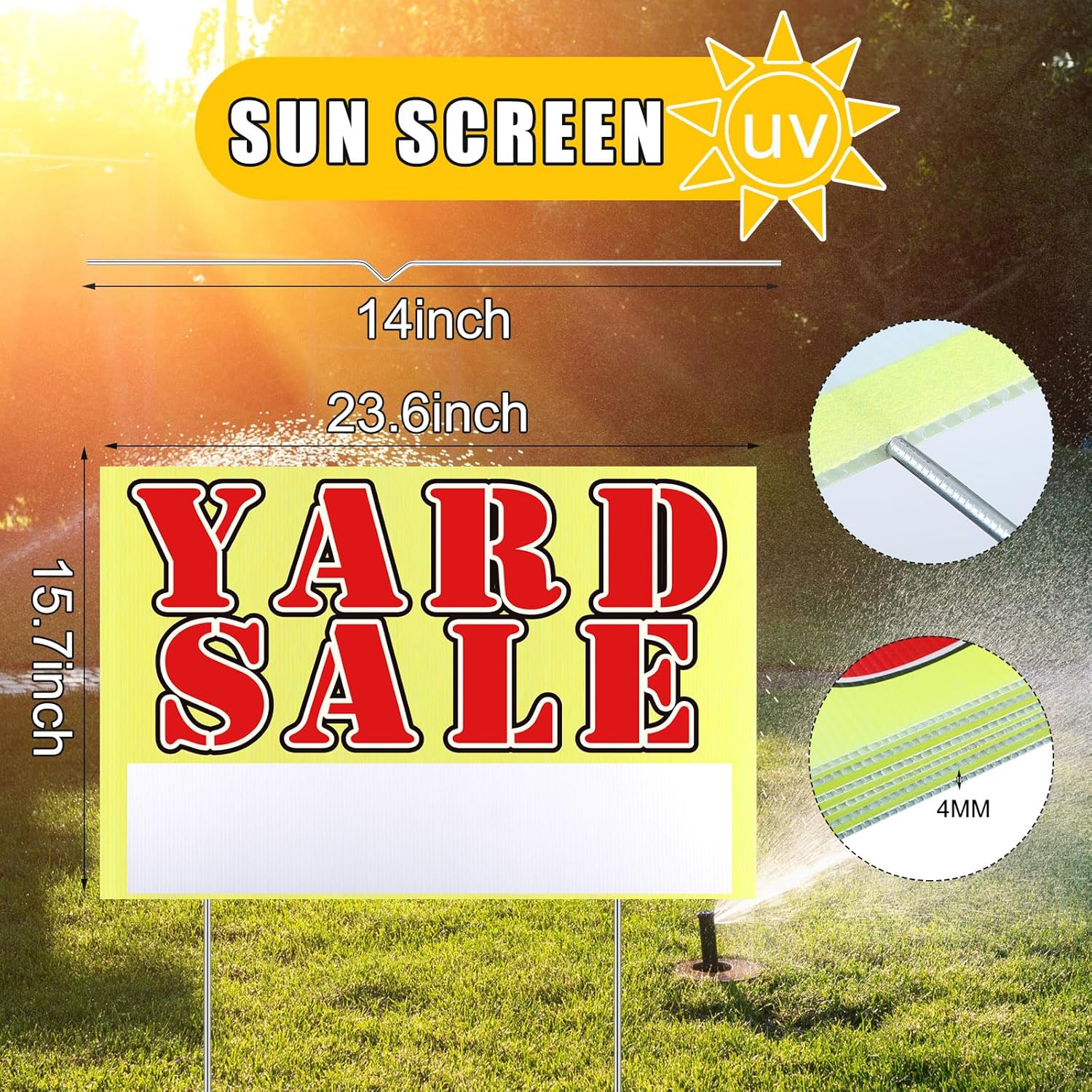 - Vivid and Robust Material: Designed from sturdy corrugated plastic, our signs assure long lasting durability under all outdoor conditions. The eye catching blend of yellow, red, and black colors will make your yard sale unmissable.