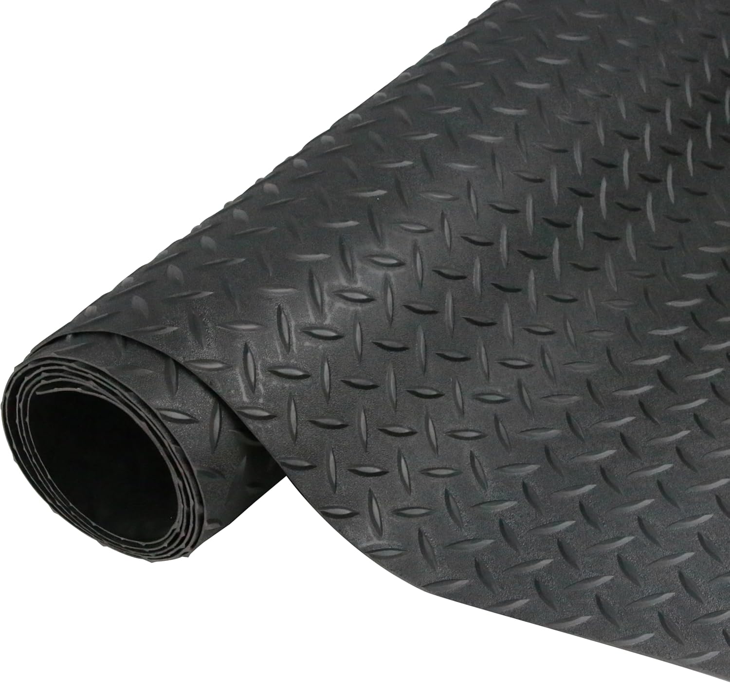 - 【Non-Slip & Upgrade Thicker 】The surface's diamond-shaped pattern maximizes traction, ensuring safety for pedestrians and vehicles, even in wet conditions. Upgrade thickness to 2.5mm, the floor mat offers enhanced stability and longevity. It can support the extended weight of various vehicles, including golf carts, trailers, trucks, and SUVs, without losing its shape.