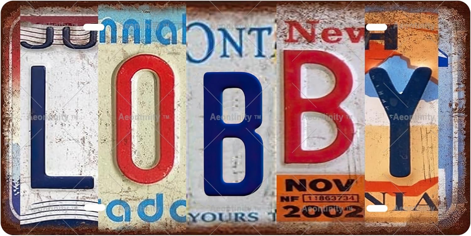 LOBBY Vintage Metal Tin Sign License Plate Bar Cafe Garage Cave Home Room Wall Bathroom Farmhouse Garden Porch Patio Decor, 12 x 6 Inch