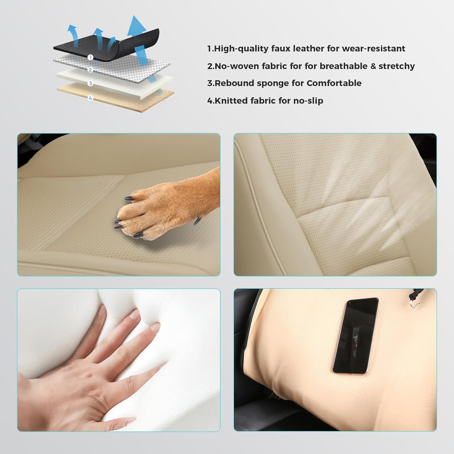 - 【Premium Car Seat Protection】: These waterproof car seat covers feature a four-layer construction, providing superior protection against spilled coffee, pet scratches, and the hot sun. They are easy to clean with just a damp cloth, ensuring your car seat covers last for a long time.