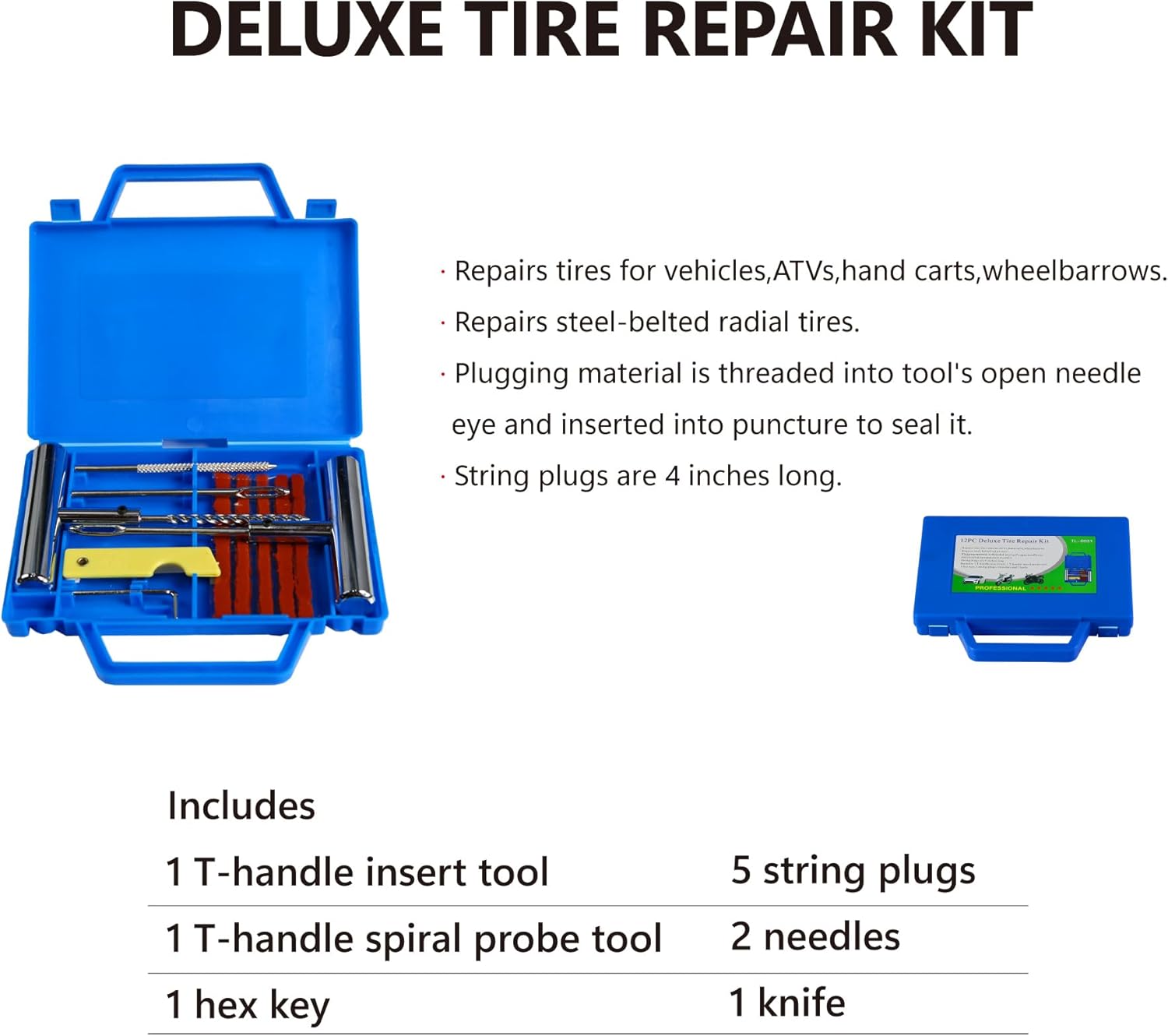 - 【All Complete Kit】 Package included: 1 x floor jack(2T) + 2pcs x jack stands(3T) + 12pcs x deluxe tire repair kit. The hydraulic car jack is constructed from high-strength steel, which assures solid structure and outstanding durability for long-term use