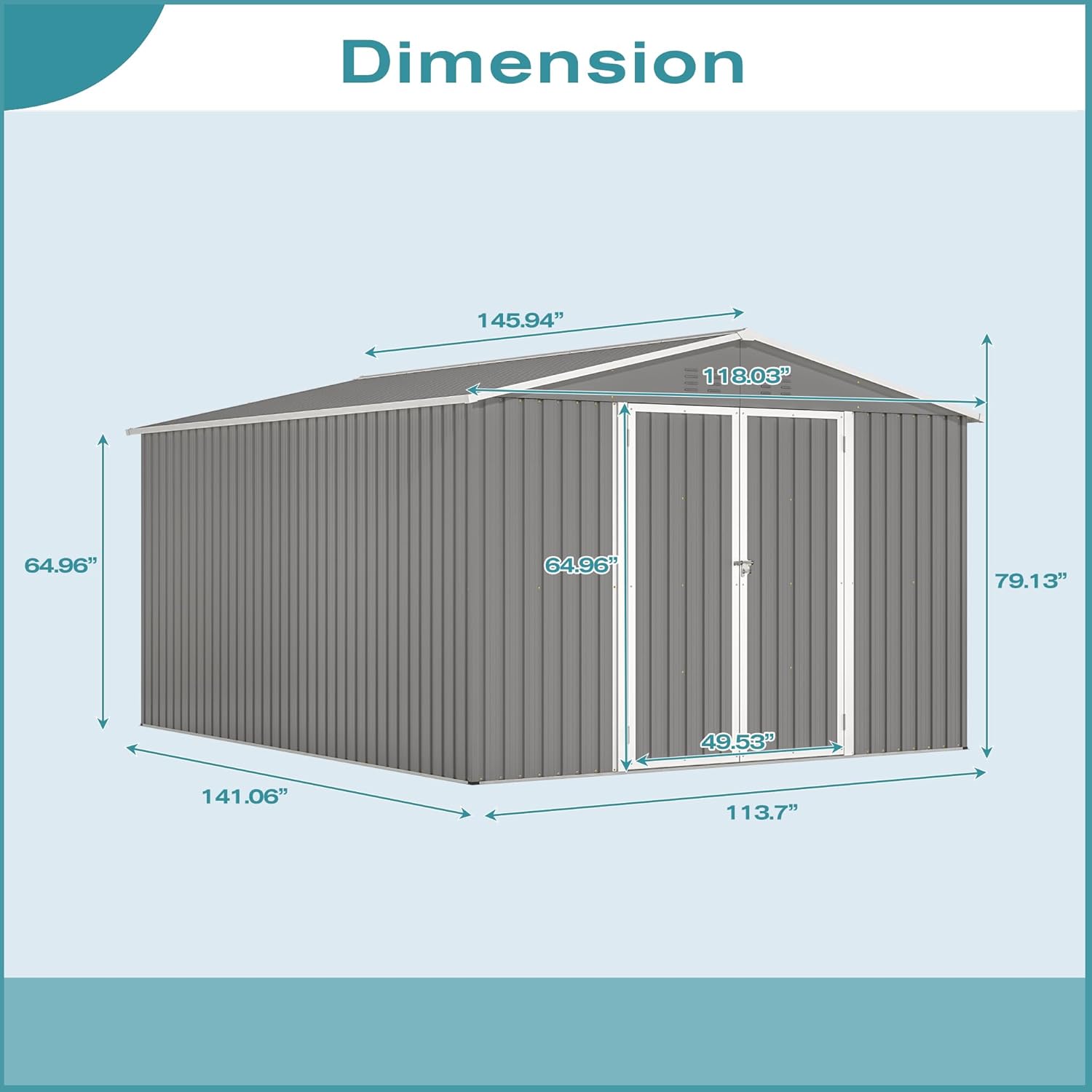 Large Outdoor Storage Shed, 10' X 12' Metal Galvanized Steel Garden Shed with 4 Vents, Utility Tool Shed Storage House for Backyard, Patio, Lawn