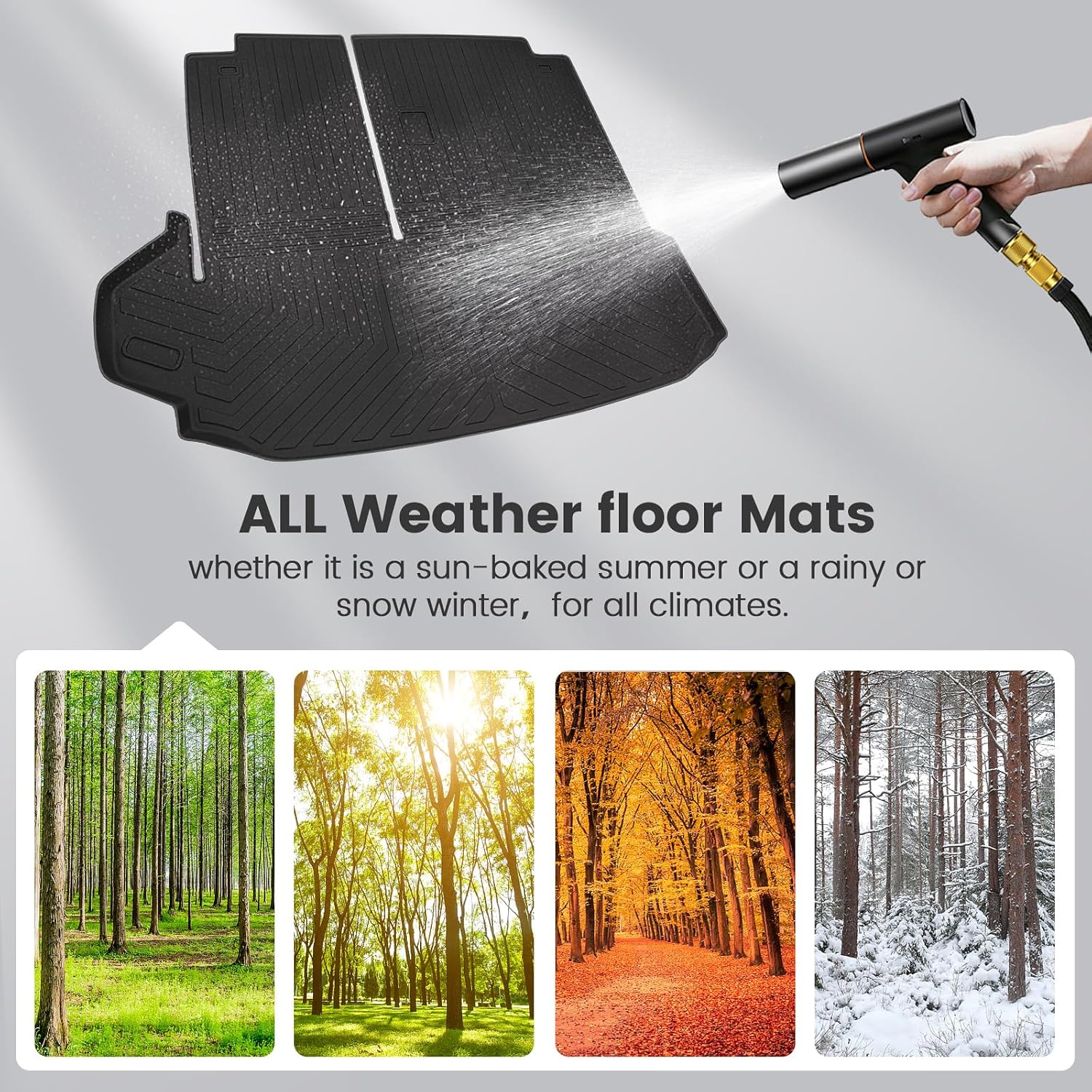 - TPE Material: Zhe floor liners are carefully selected and made of eco-friendly TPE material, which are not only soft and durable, but also non-toxic and odorless. Even in extreme weather conditions, the floor mats retain excellent elasticity and softness, ensuring a comfortable travel environment for your family