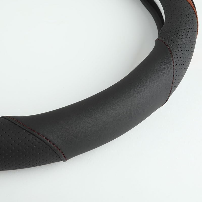 Car Steering Wheel Cover, Leather Steering Wheel Cover Brown Universal 14.5-15 Inch Microfiber Leather Anti-Slip Breathable Auto Steering Wheel Covers for Men Women (Black&Brown)