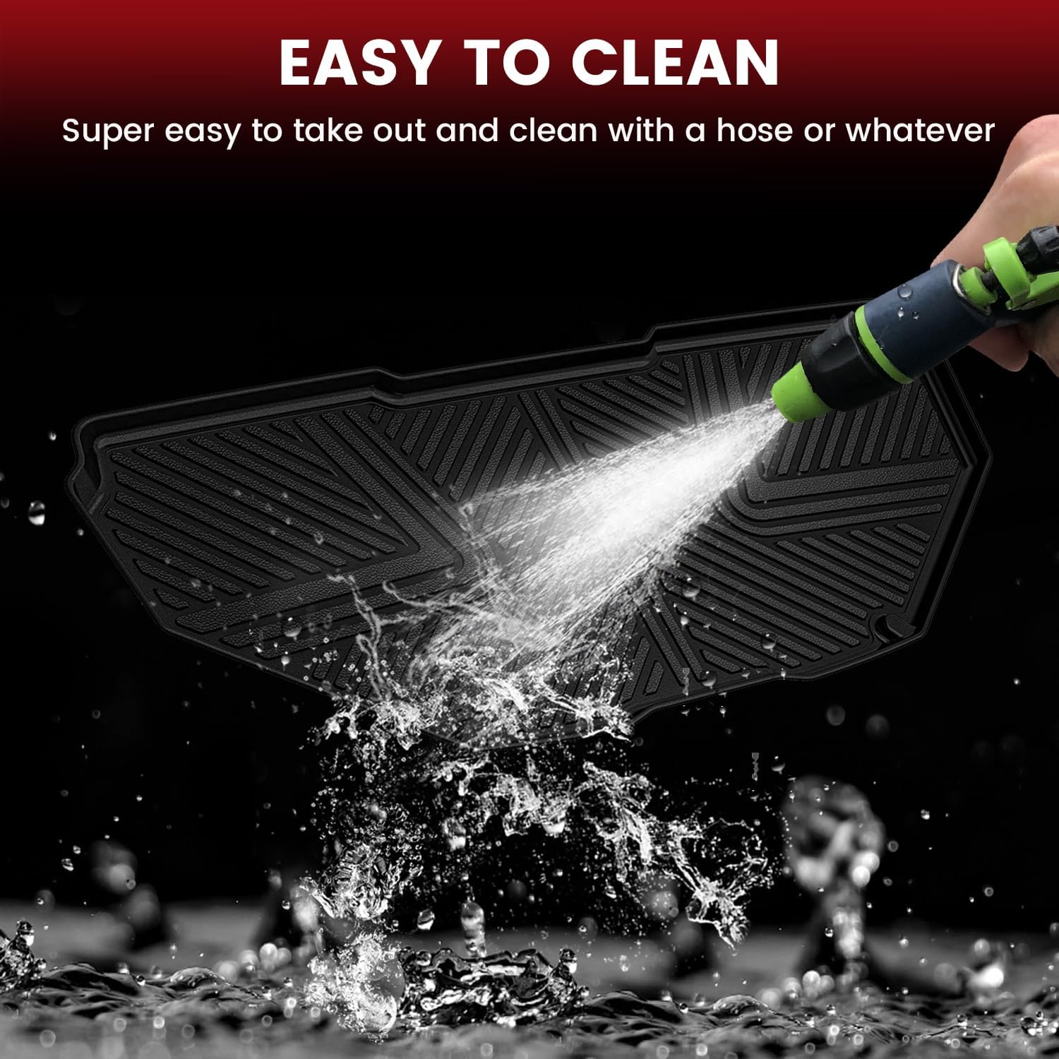 - EASY TO CLEAN - Cleaning is easy thanks to the weatherproof and dirt-resistant surface of these front trunk mats. Simply remove them from your car and wipe with a damp towel or hose to easily remove surface dust, stains and liquid residue from the Rivian front trunk mats. Your floor mats will look like new.