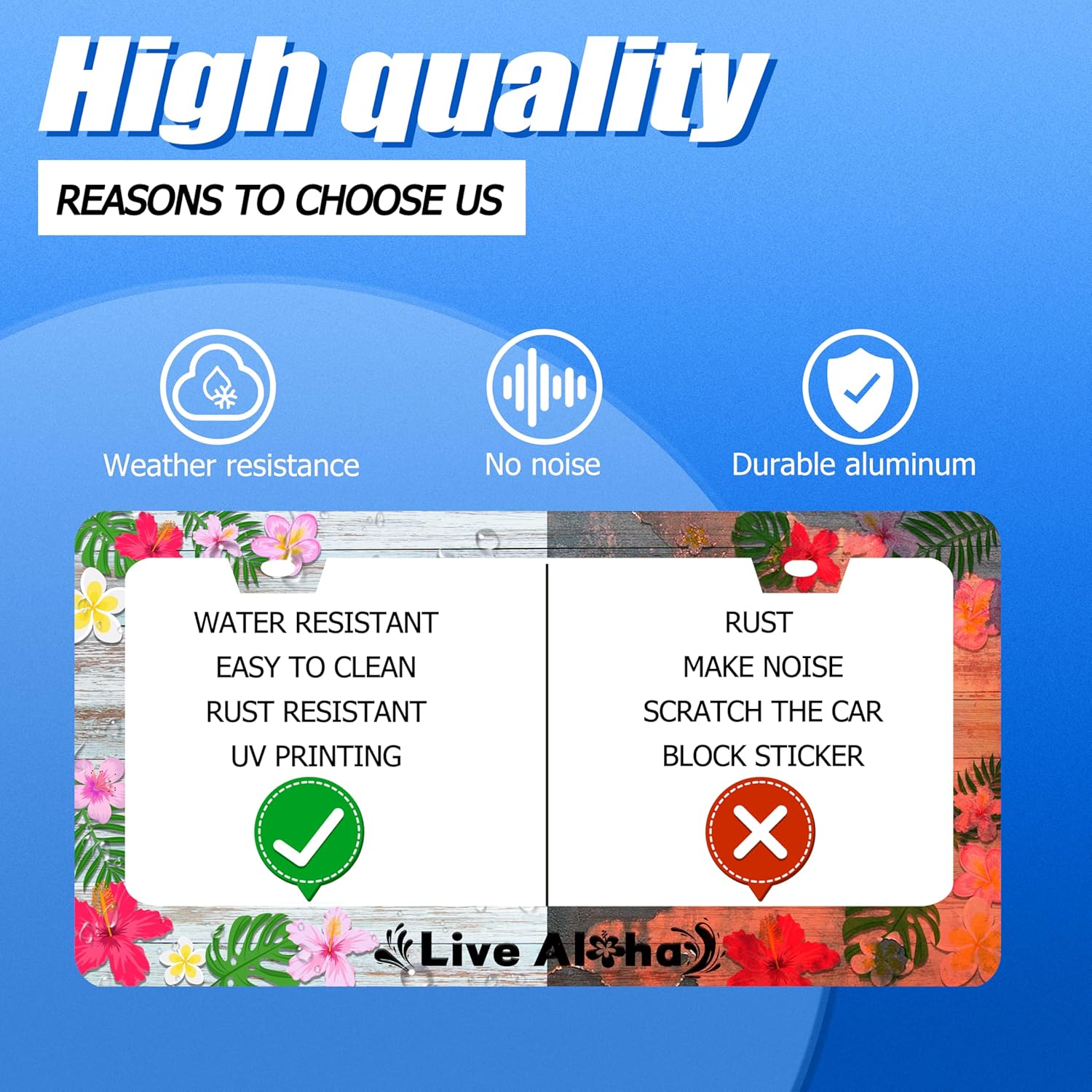Aloha License Plate Frame Beautiful Hibiscus Flower License Plate Stainless Steel Funny License Plate Holder Hawaii Car Accessories Decoration with Screws Fits Standard Vehicles Size 12.3" x 6.3"