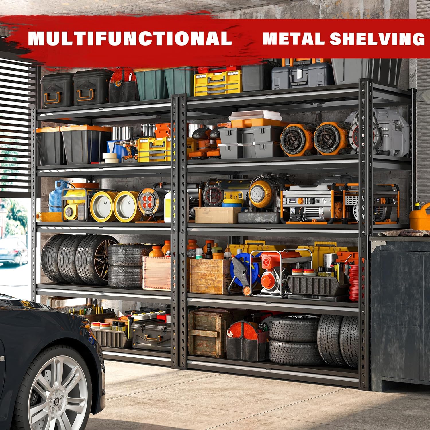 - 【35.4''W X 15.7''D X 72''H Wider Metal Shelves】Wider, for all your storage need. This garage shelves can hold at least 8 regular sized 27 gallon storage containers, making your space organized even more. Versatile application garage storage for personal use in garage, basement, pantry, kitchen, living room and etc. This commercial grade storage shelves heavy duty also works perfect for business use as goods shelves in automotive, education, foodservice, government, healthcare, industrial