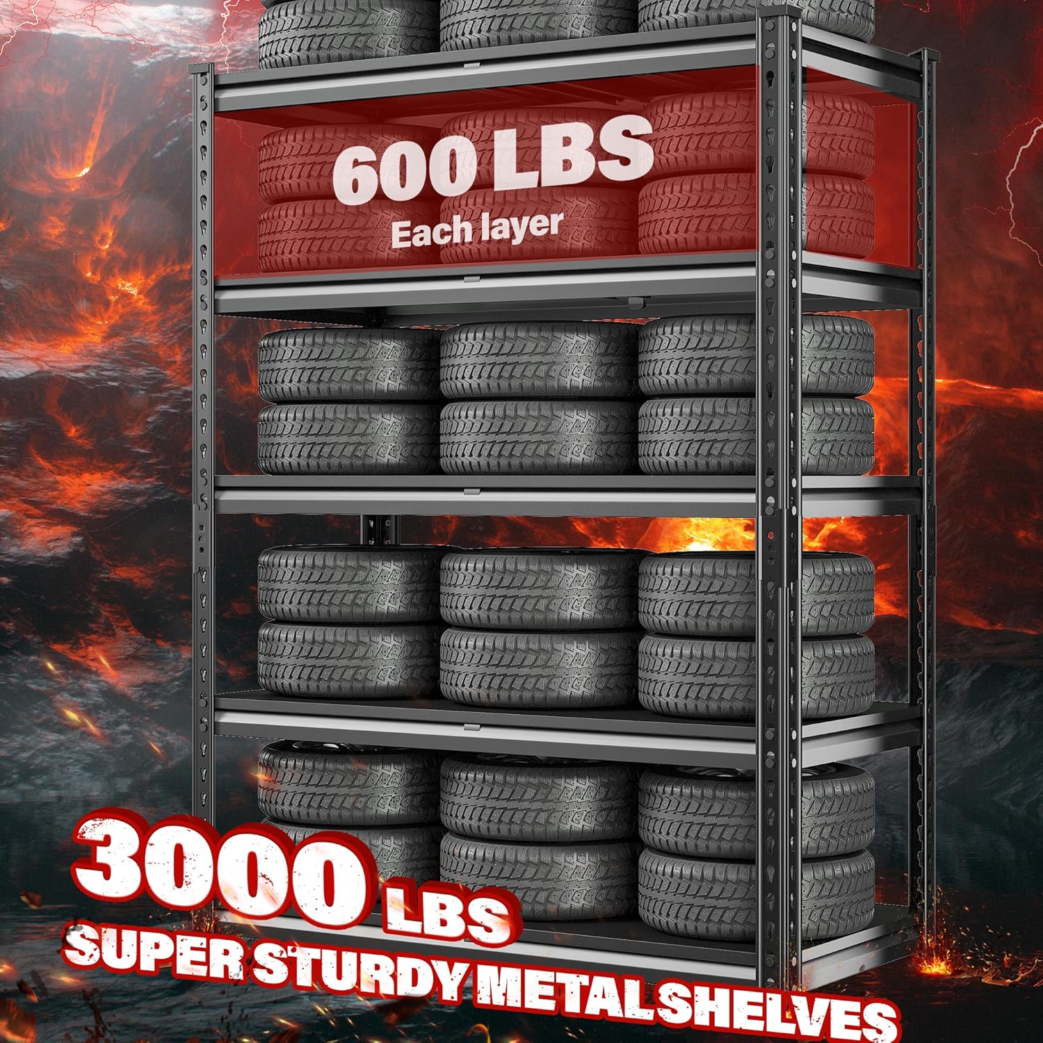 - 【Extremely Sturdy & 3000LBS Garage Shelving】3 Support ribs, thickened metal columns and beams provide greater supoort. REIBII's heavy duty garage storage shelves has thickened metal legs. Each solid thickened metal heavy duty shelving can hold up to 600LBS, with a total bearing capacity of 3000LBS, which makes industrial garage shelves heavy duty more stable and solid than flimsy wood board storage shelves