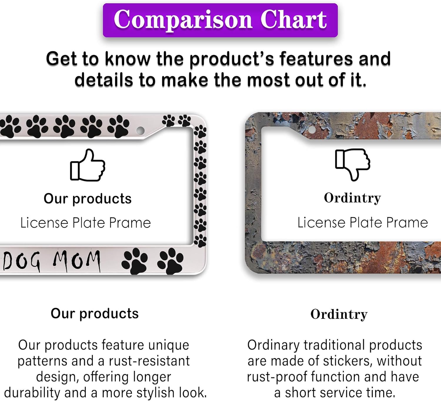 - FUNNY DESIGN: Featuring a unique and customized design, this license plate frame creates an eye-catching and bold statement for your vehicle. Not only does it add a touch of personality to your car, but it also makes for a great holiday gift, souvenir, or decorative piece for family, friends, and colleagues. Elevate your vehicle's style while sharing a laugh!
