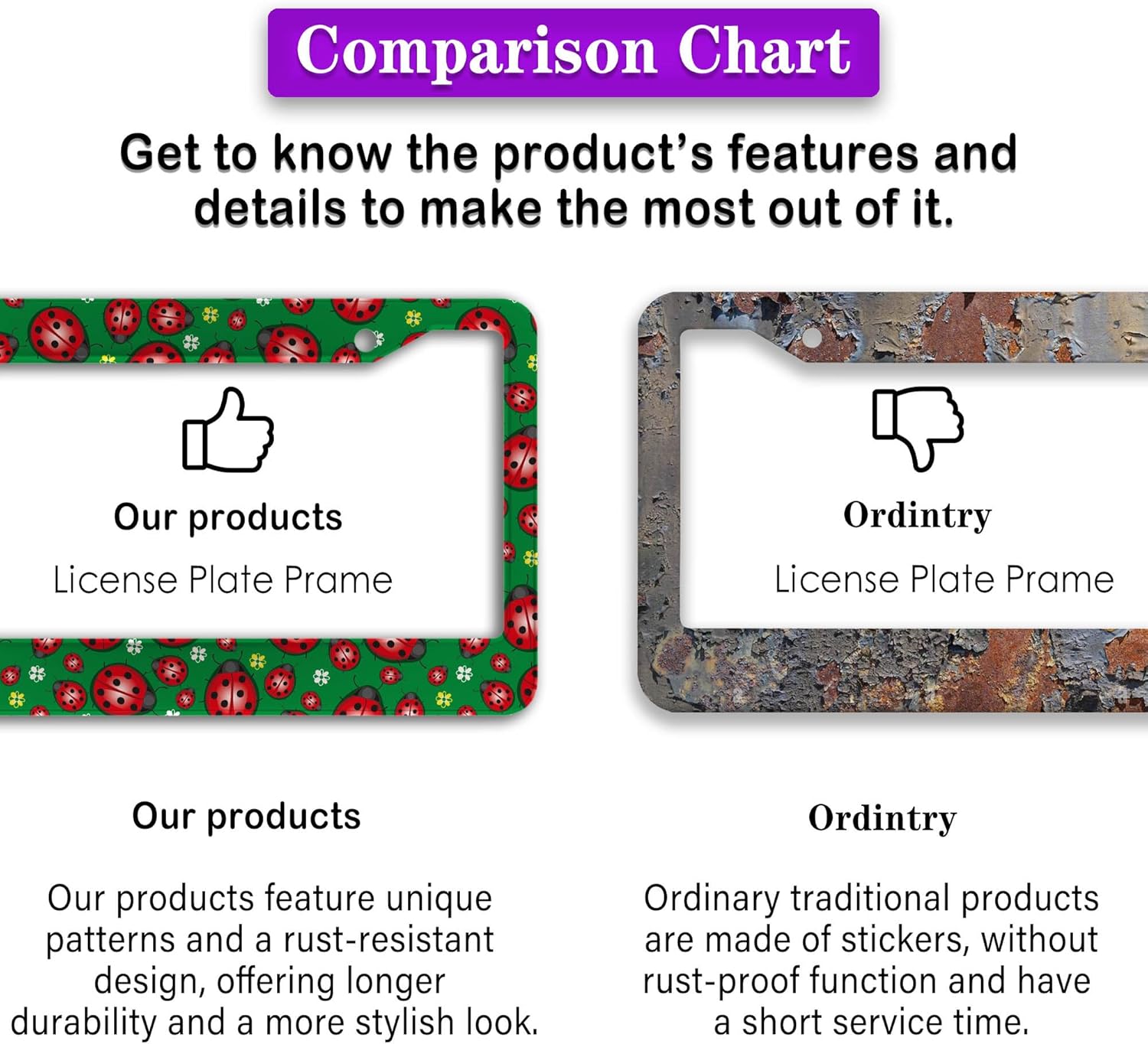- FUNNY DESIGN: Featuring a unique and customized design, this license plate frame creates an eye-catching and bold statement for your vehicle. Not only does it add a touch of personality to your car, but it also makes for a great holiday gift, souvenir, or decorative piece for family, friends, and colleagues. Elevate your vehicle's style while sharing a laugh!