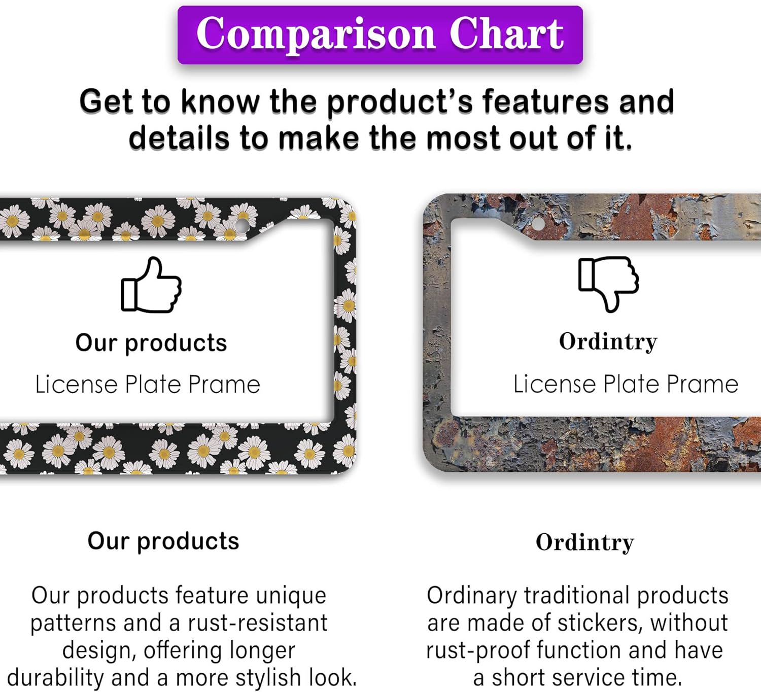 - FUNNY DESIGN: Featuring a unique and customized design, this license plate frame creates an eye-catching and bold statement for your vehicle. Not only does it add a touch of personality to your car, but it also makes for a great holiday gift, souvenir, or decorative piece for family, friends, and colleagues. Elevate your vehicle's style while sharing a laugh!
