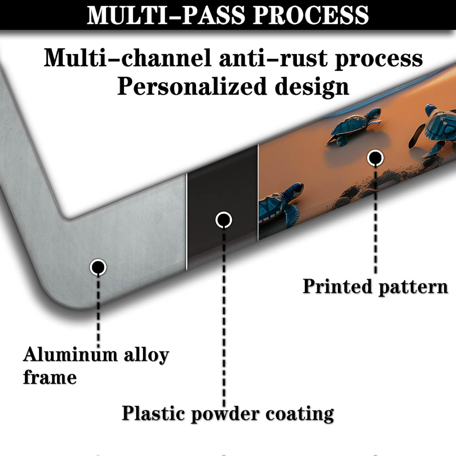 License Plate Frames Multicolor Fun License Plate Frame Protector Turtle Beach and Ocean Universal Aluminum Car Accessory 2 Pack with Screw Covers Set