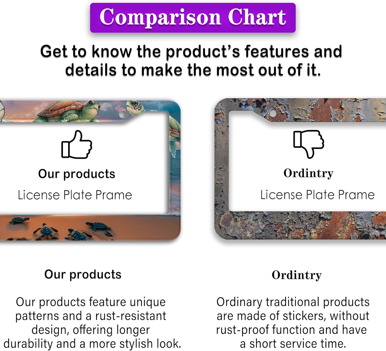 - FUNNY DESIGN: Featuring a unique and customized design, this license plate frame creates an eye-catching and bold statement for your vehicle. Not only does it add a touch of personality to your car, but it also makes for a great holiday gift, souvenir, or decorative piece for family, friends, and colleagues. Elevate your vehicle's style while sharing a laugh!