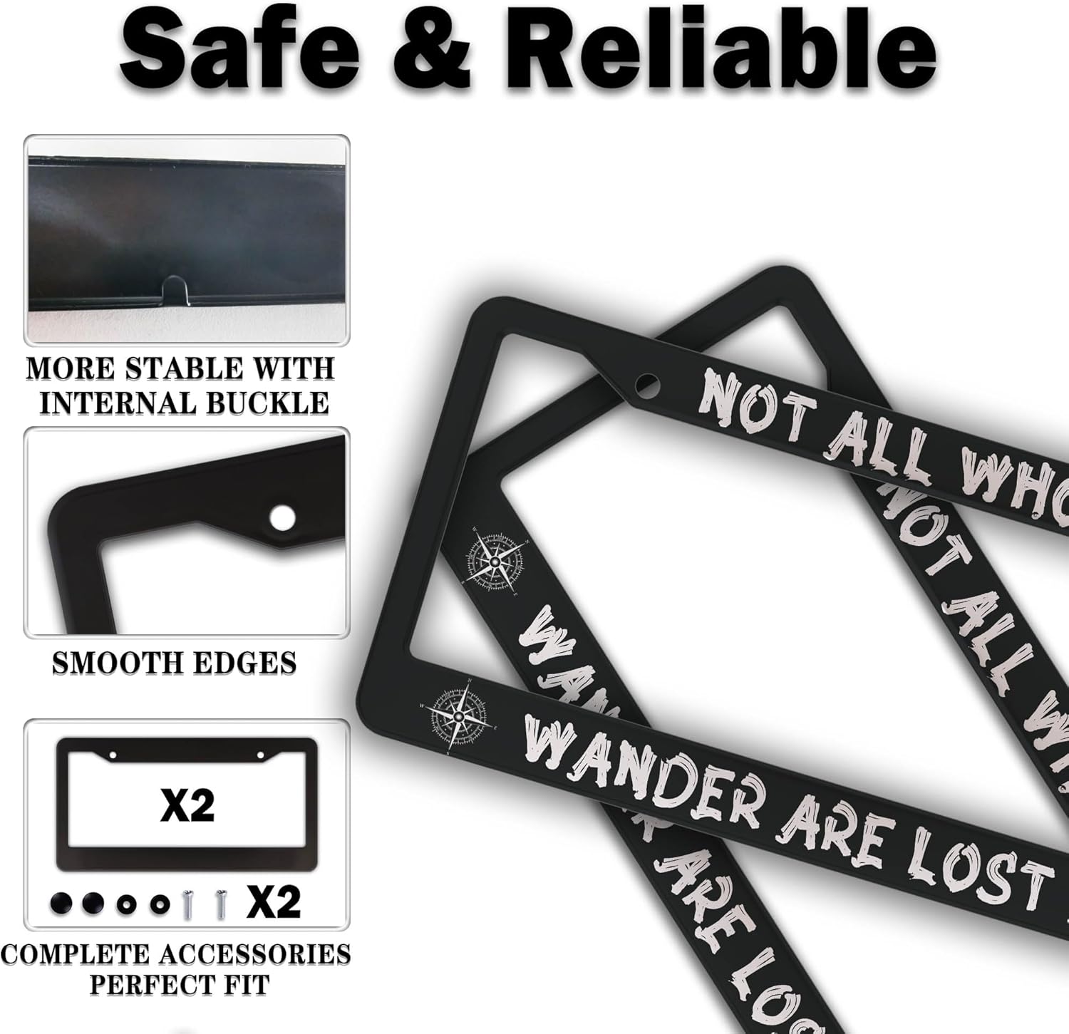 License Plate Holder Black and White License Plate Frames Not All Who Wander are Lost Universal Aluminum Car Accessory 2 Pack with Screw Covers Set