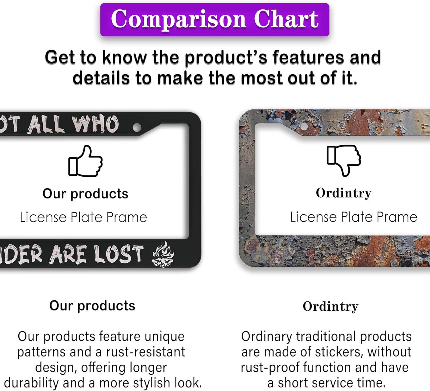 - FUNNY DESIGN: Featuring a unique and customized design, this license plate frame creates an eye-catching and bold statement for your vehicle. Not only does it add a touch of personality to your car, but it also makes for a great holiday gift, souvenir, or decorative piece for family, friends, and colleagues. Elevate your vehicle's style while sharing a laugh!