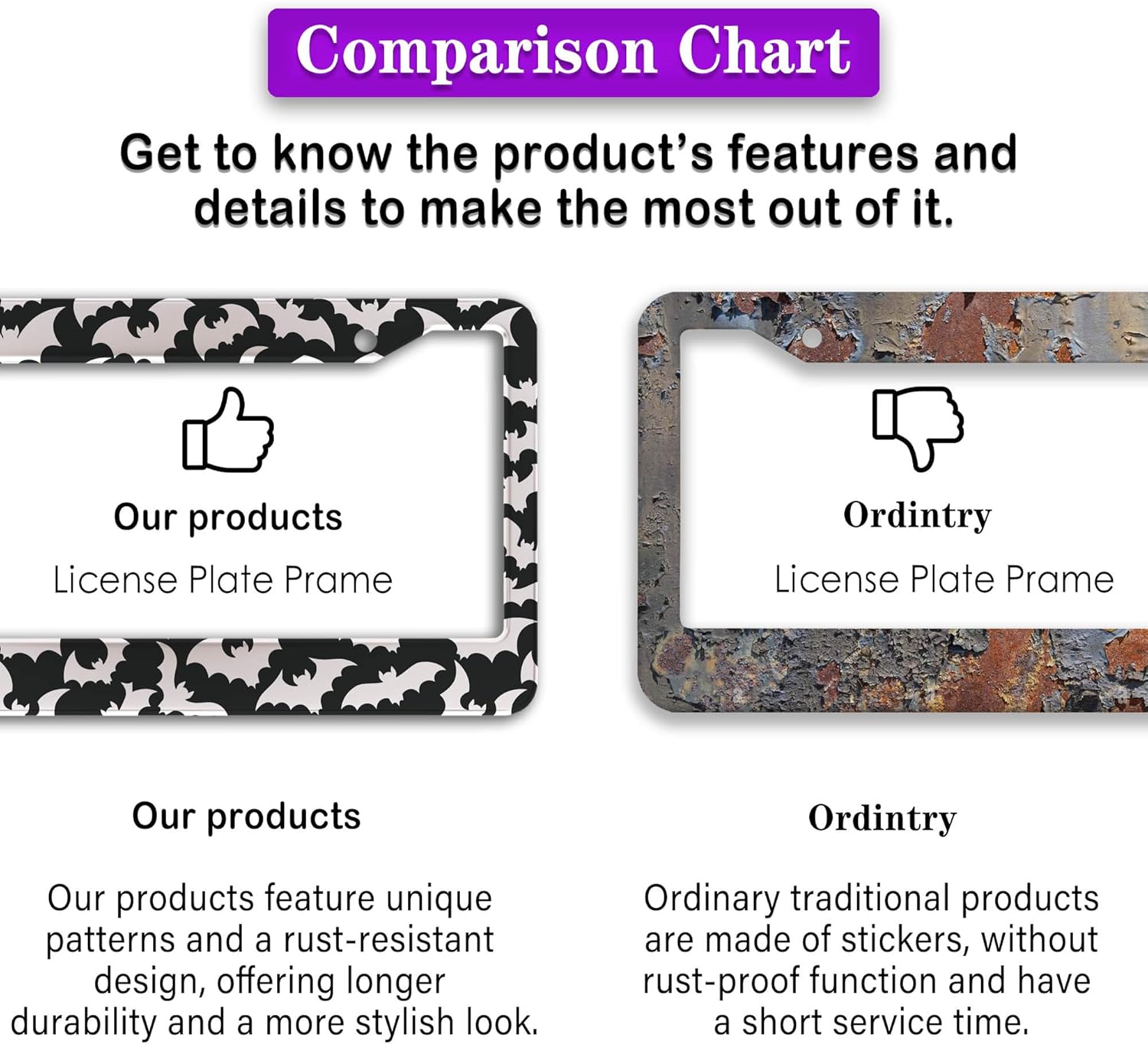 - FUNNY DESIGN: Featuring a unique and customized design, this license plate frame creates an eye-catching and bold statement for your vehicle. Not only does it add a touch of personality to your car, but it also makes for a great holiday gift, souvenir, or decorative piece for family, friends, and colleagues. Elevate your vehicle's style while sharing a laugh!