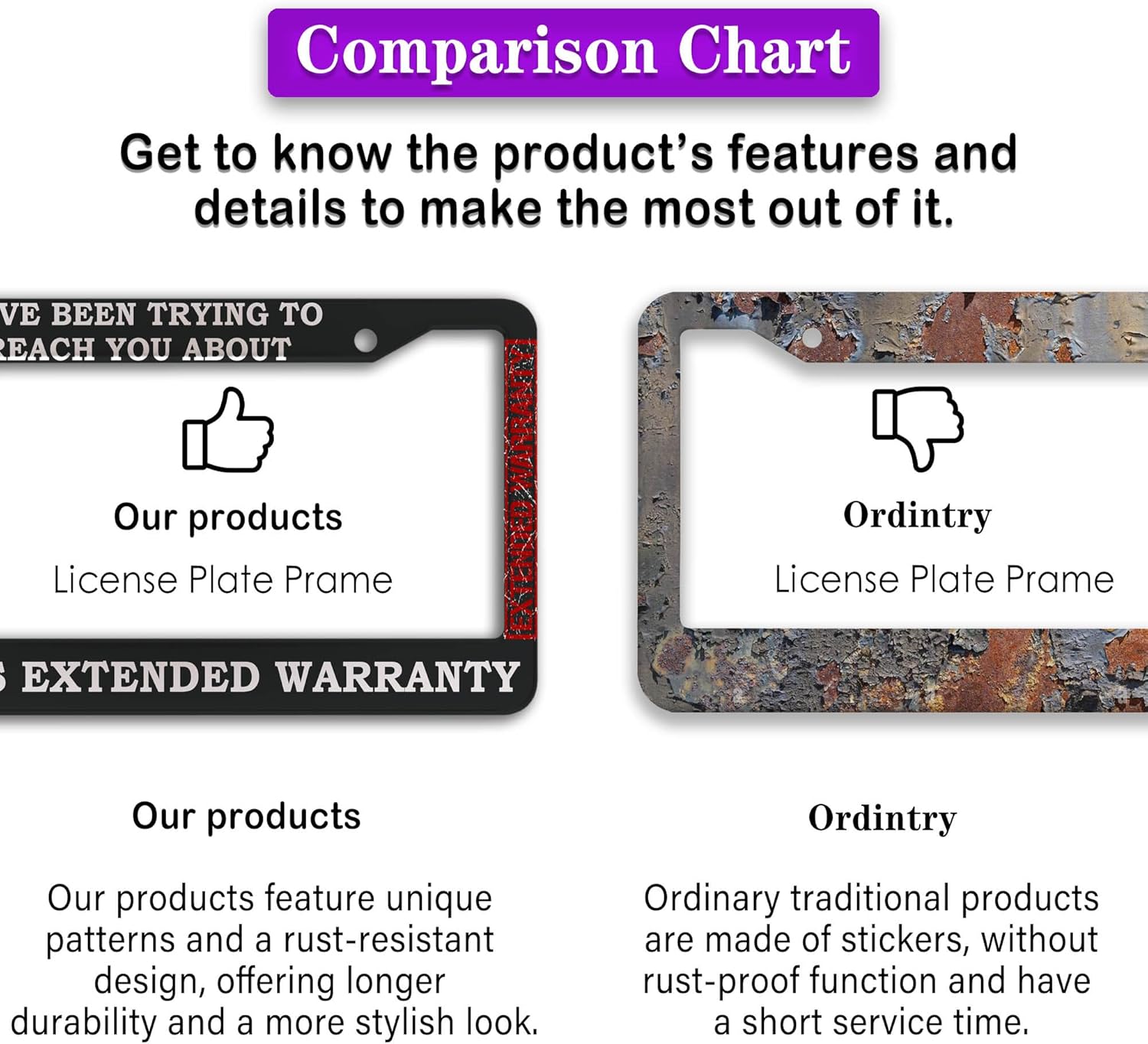 - FUNNY DESIGN: Featuring a unique and customized design, this license plate frame creates an eye-catching and bold statement for your vehicle. Not only does it add a touch of personality to your car, but it also makes for a great holiday gift, souvenir, or decorative piece for family, friends, and colleagues. Elevate your vehicle's style while sharing a laugh!
