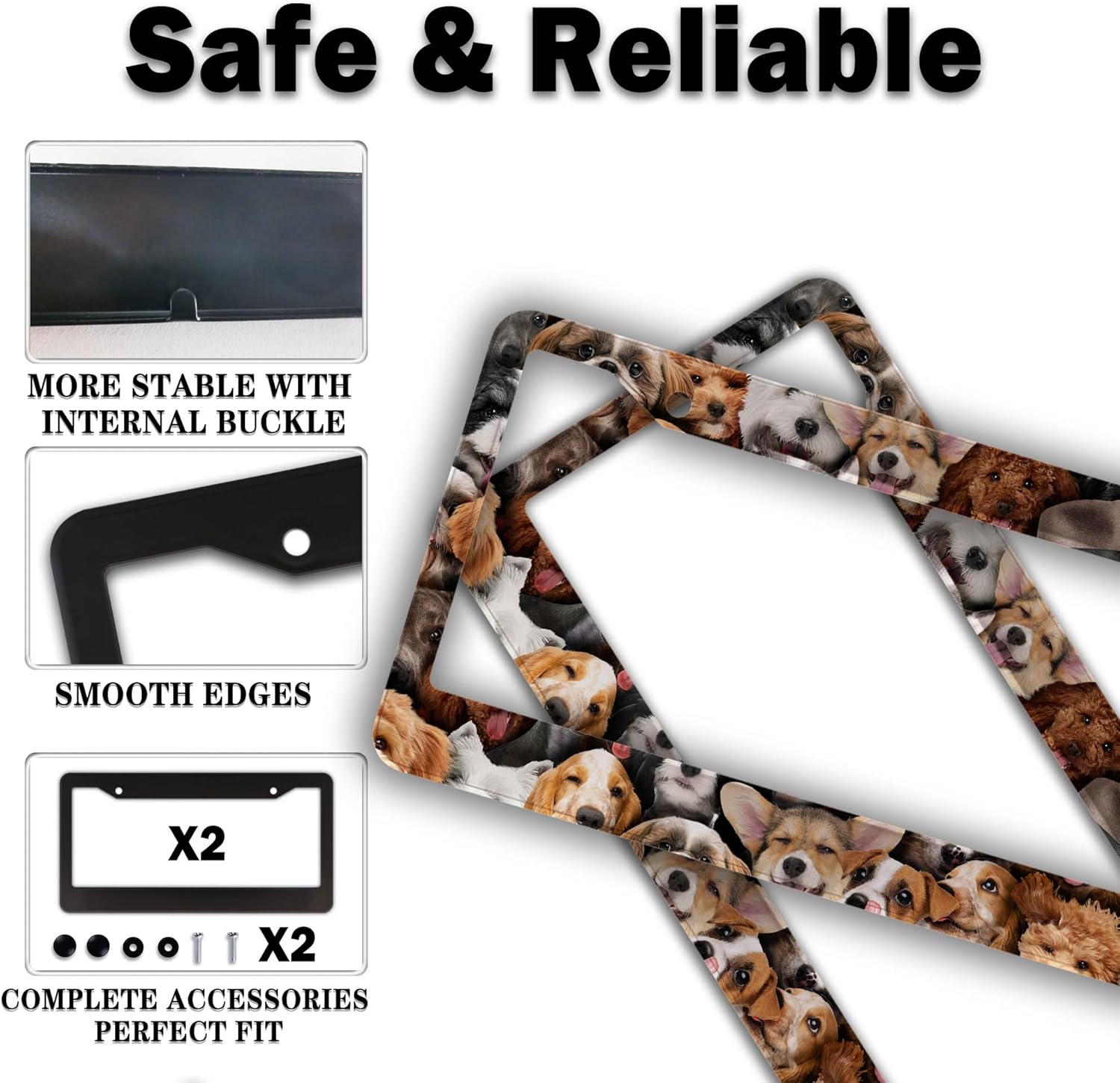 License Plate Frames Multicolor Custom License Plate Frame Dogs Collection Universal Aluminum Car Accessory 2 Pack with Screw Covers Set