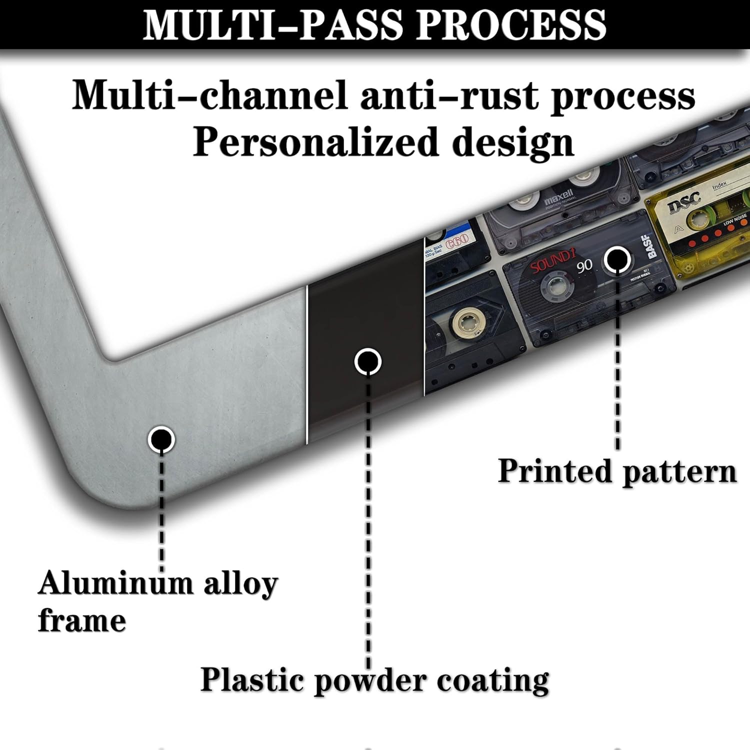 License Plate Protector Multicolor License Plate Frames Vintage Cassette Music Tape Aluminum Metal Car Accessory 2 Pack with Screw Covers Set