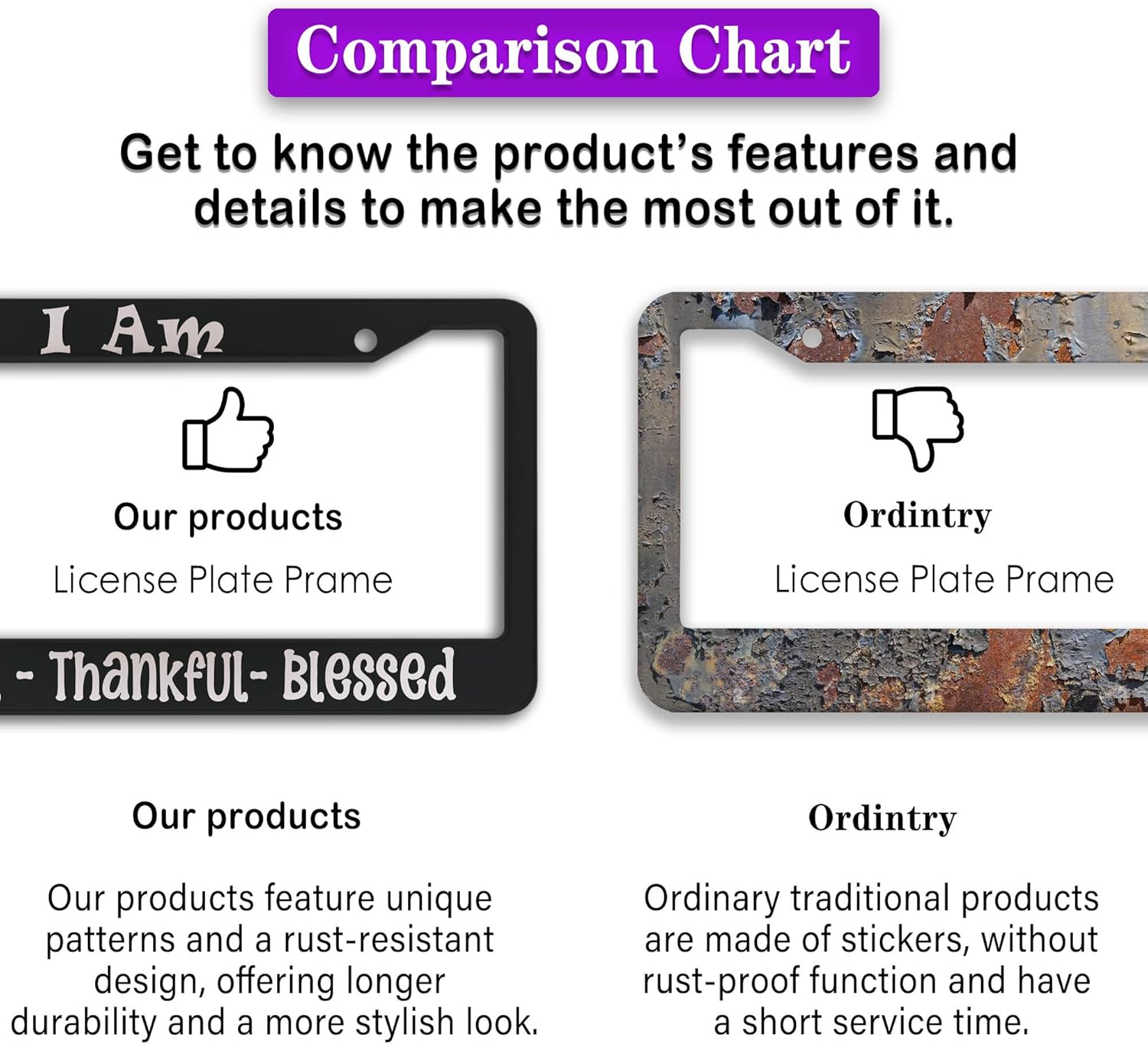 License Plate Frames Black and White Front License Plate Bracket I Am Grateful Thankful Blessed Aluminum Metal Car Accessory 2 Pack with Screw Covers Set