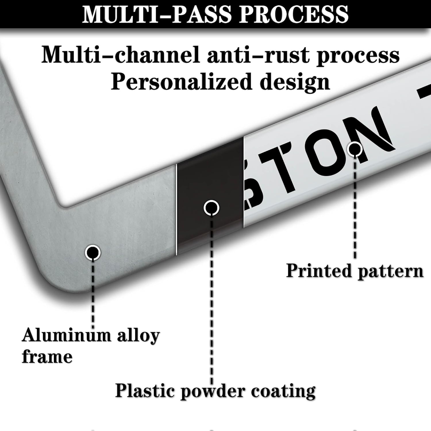 - ALUMINUM FRAME: This License Plate Frame is crafted from high-quality aluminum that is resistant to corrosion, rust, and harsh weather conditions. Its rugged reliability design ensures a long lifespan, making it capable of withstanding car washes and extreme weather, providing you with a reliable and stylish solution for your vehicle.