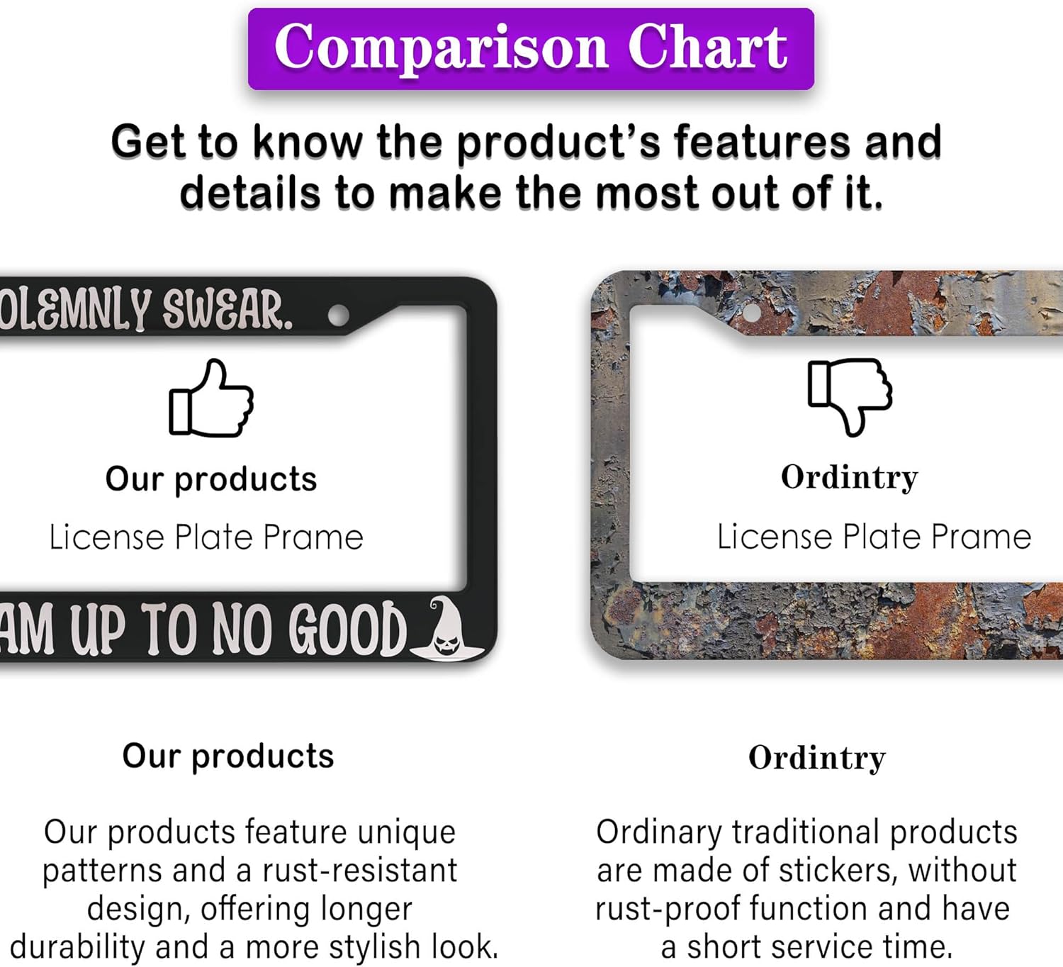 - FUNNY DESIGN: Featuring a unique and customized design, this license plate frame creates an eye-catching and bold statement for your vehicle. Not only does it add a touch of personality to your car, but it also makes for a great holiday gift, souvenir, or decorative piece for family, friends, and colleagues. Elevate your vehicle's style while sharing a laugh!