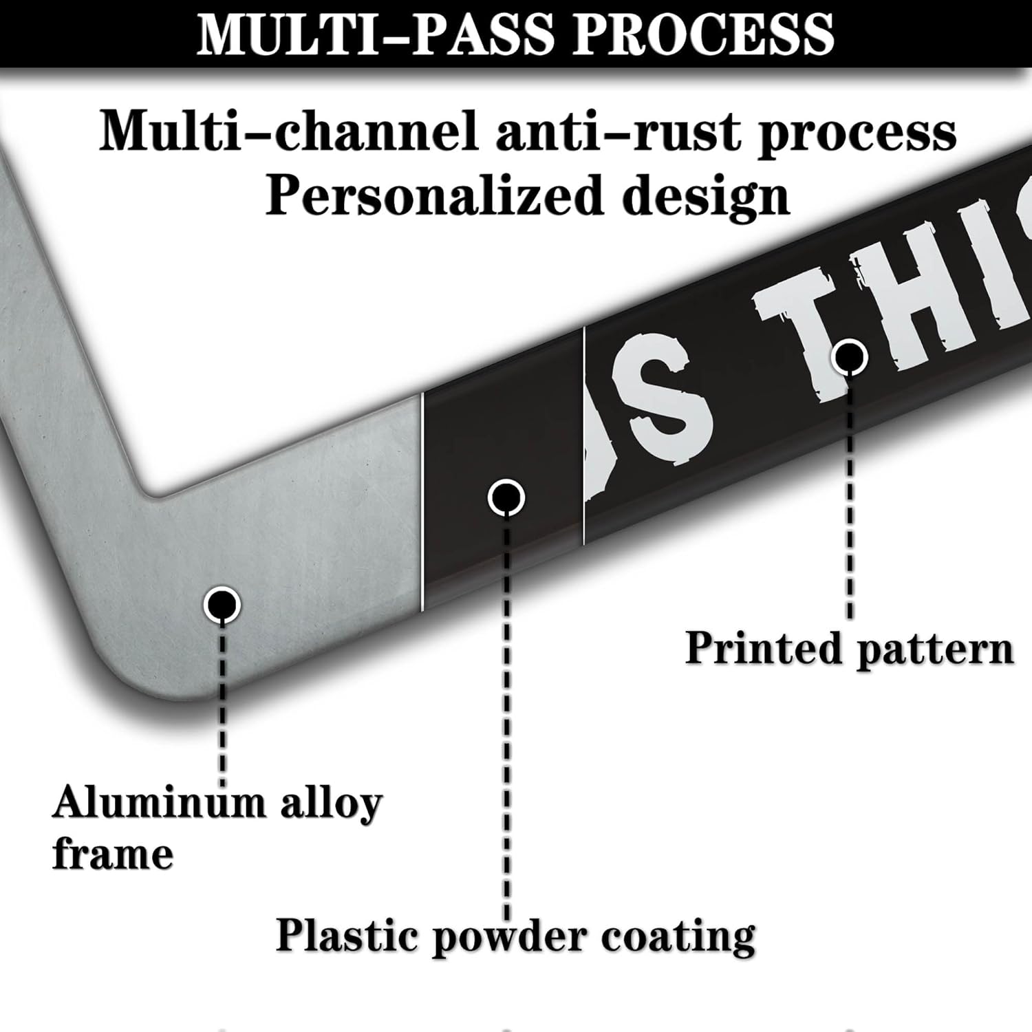 - FUNNY DESIGN: Featuring a unique and customized design, this license plate frame creates an eye-catching and bold statement for your vehicle. Not only does it add a touch of personality to your car, but it also makes for a great holiday gift, souvenir, or decorative piece for family, friends, and colleagues. Elevate your vehicle's style while sharing a laugh!