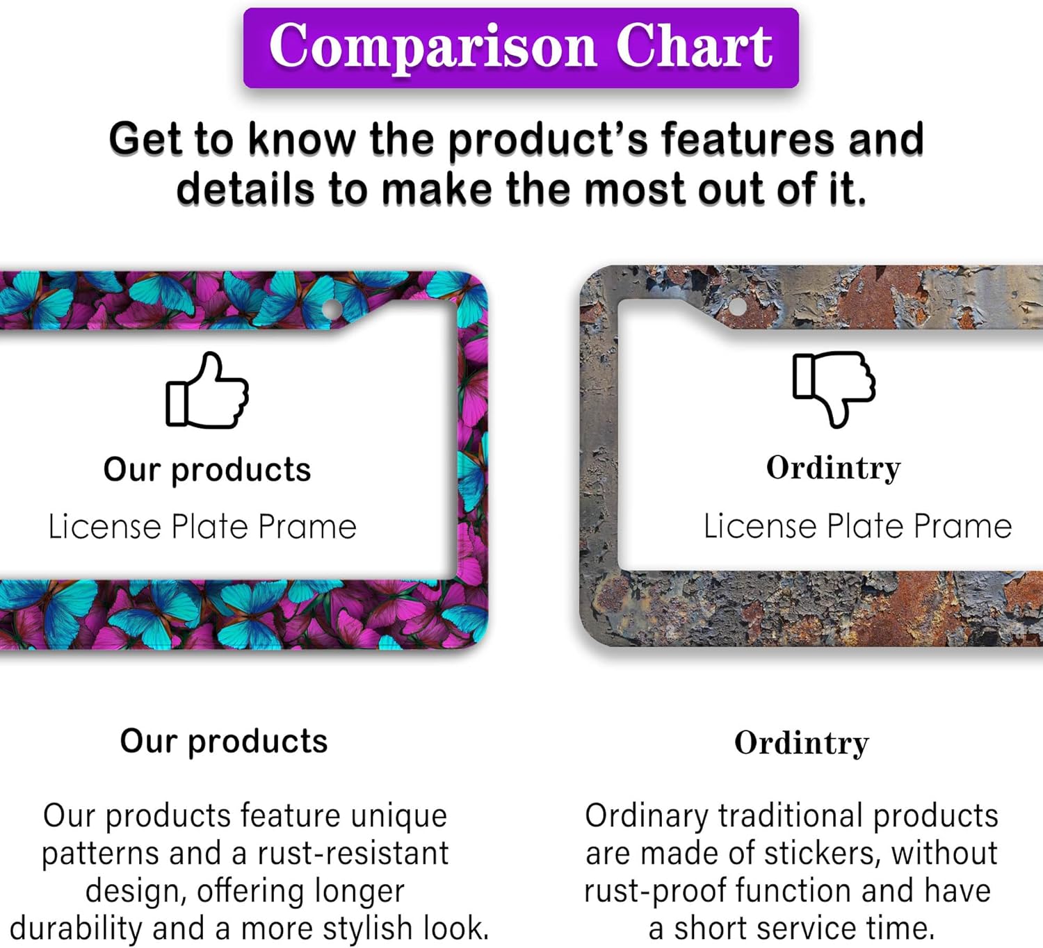 - FUNNY DESIGN: Featuring a unique and customized design, this license plate frame creates an eye-catching and bold statement for your vehicle. Not only does it add a touch of personality to your car, but it also makes for a great holiday gift, souvenir, or decorative piece for family, friends, and colleagues. Elevate your vehicle's style while sharing a laugh!