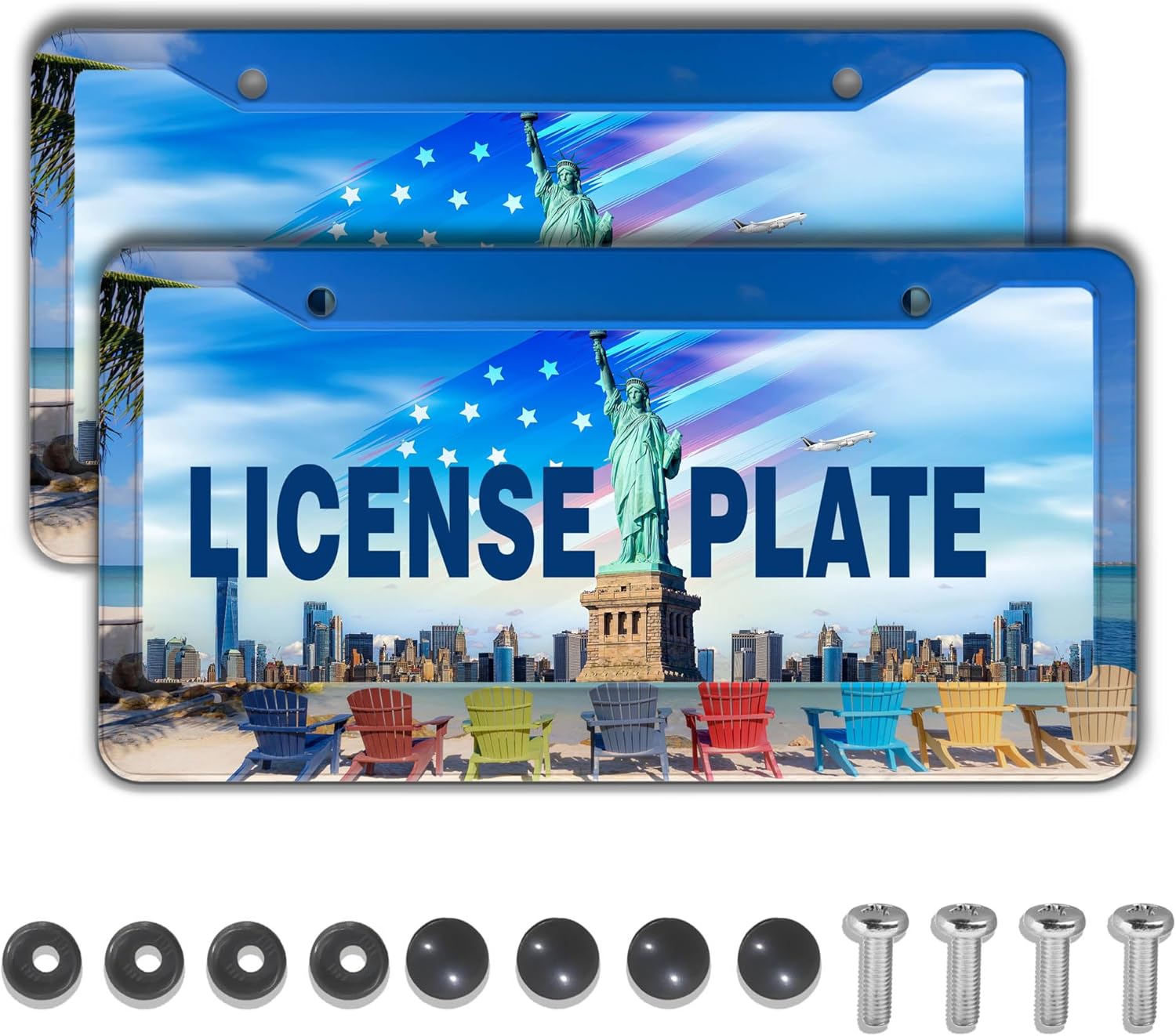 - PACKAGE CONTENT: This package includes 2 license plate frames (1 for the front and 1 for the back), along with 4 screws, 4 caps, and 4 fasteners with washers. Installation is a breeze, taking just a few minutes to transform your vehicle's appearance and give it a fresh, stylish look.