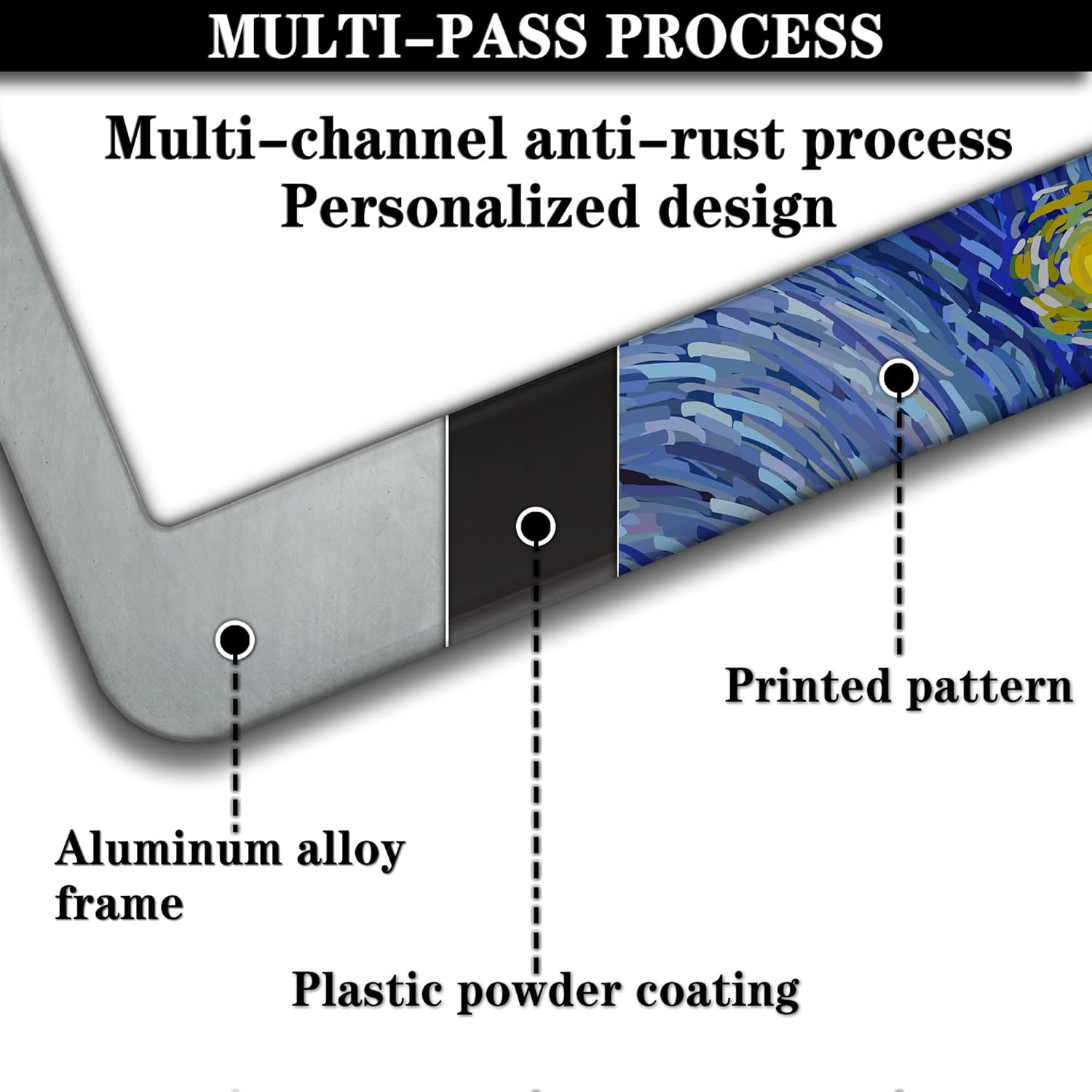 License Plate Bracket Multicolor License Plate Frames Starry Night by Aluminum Metal Car Accessory 2 Pack with Screw Covers Set